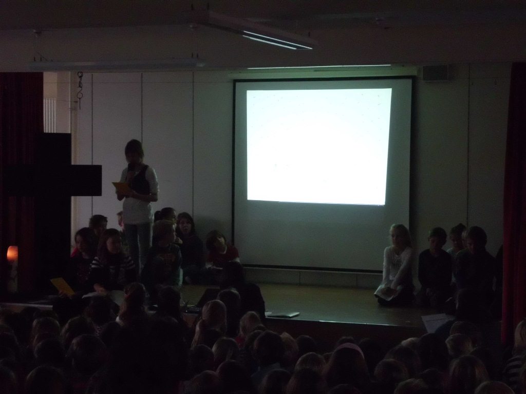 Heute trafen sich die Kinder, Lehrer und auch einige Eltern der Grundschule wieder in der Aula, um gemeinsam die Andacht zu St. Martin zu feiern.