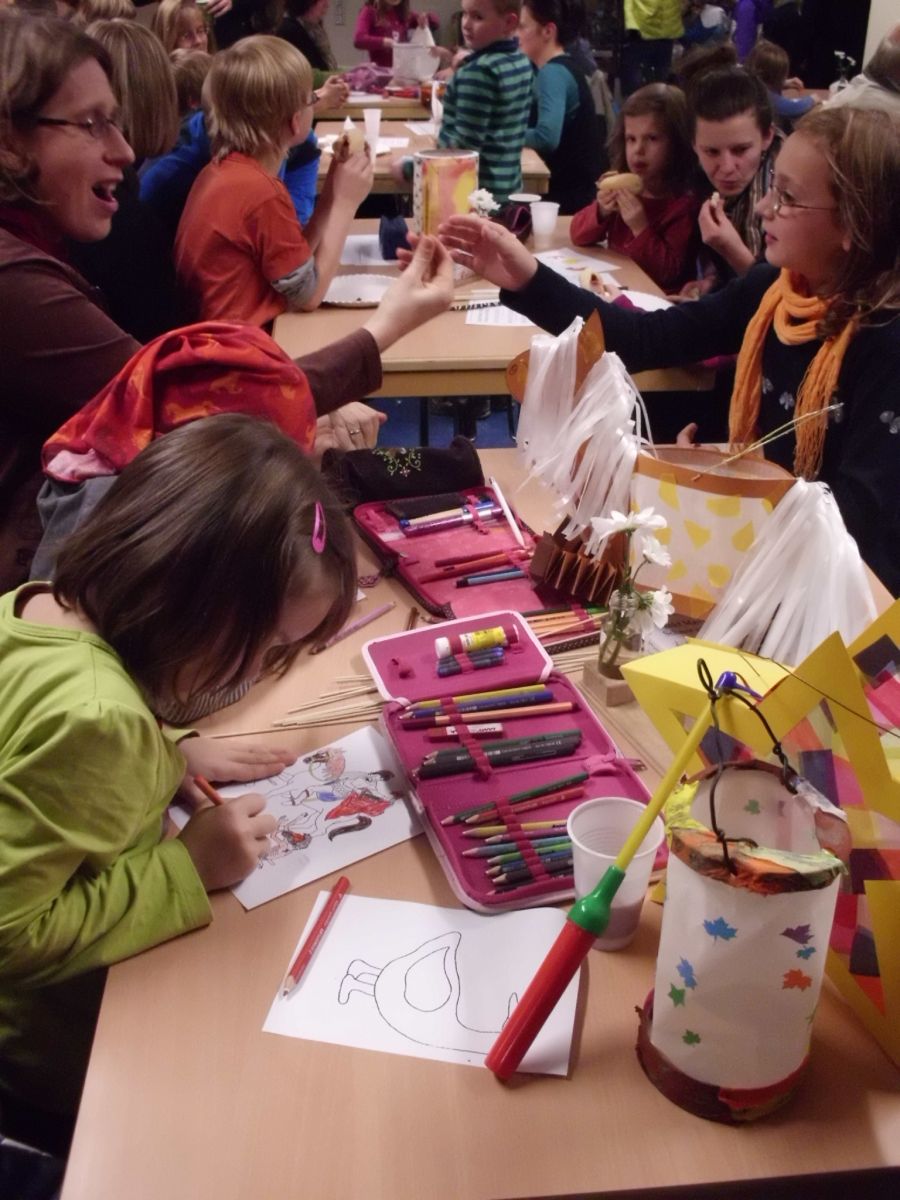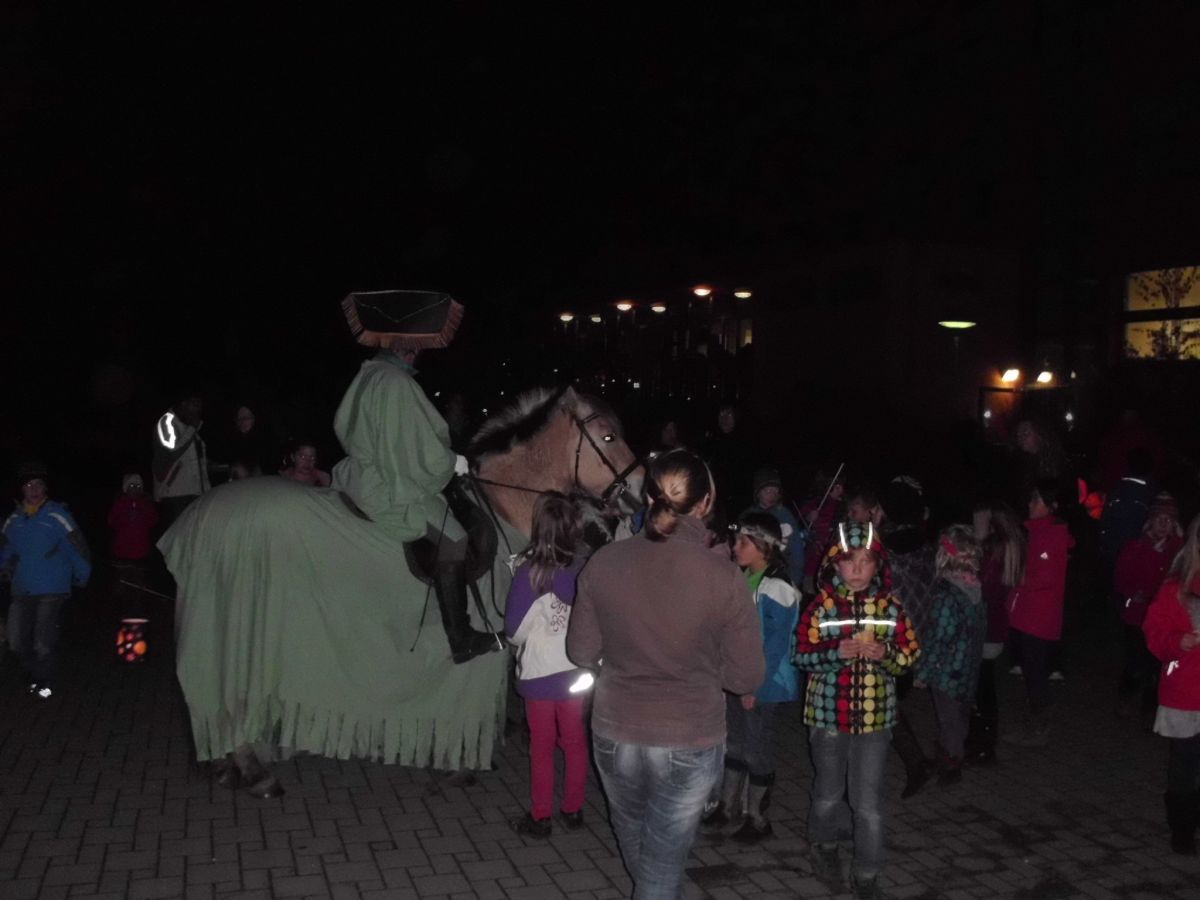 Nachmittags fand dann das rege besuchte Martinsfest statt, das durch die Eltern organisiert wurde: mit Basteln, Singen, Laterne laufen mit Pferd an der Spitze, Martinshörnchen, Feuer und natürlich viel Gemeinschaft innerhalb und außerhalb der Schule.