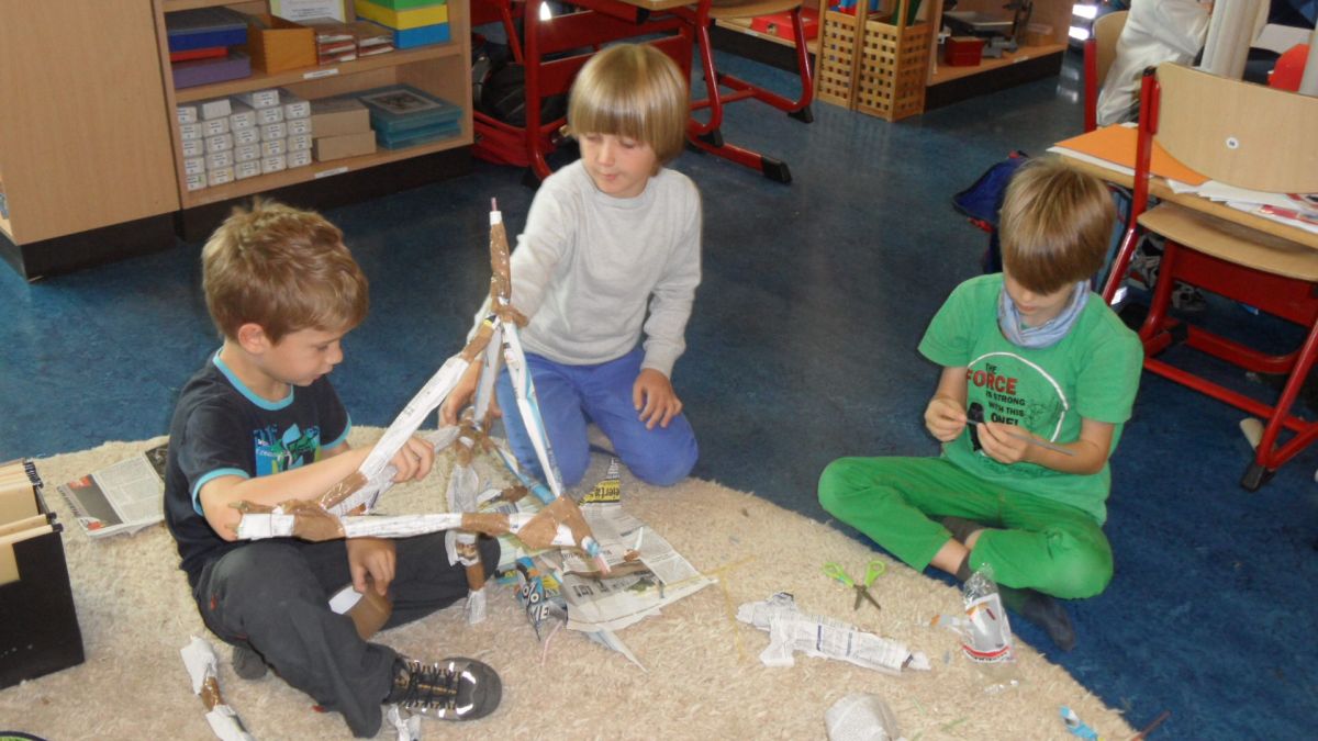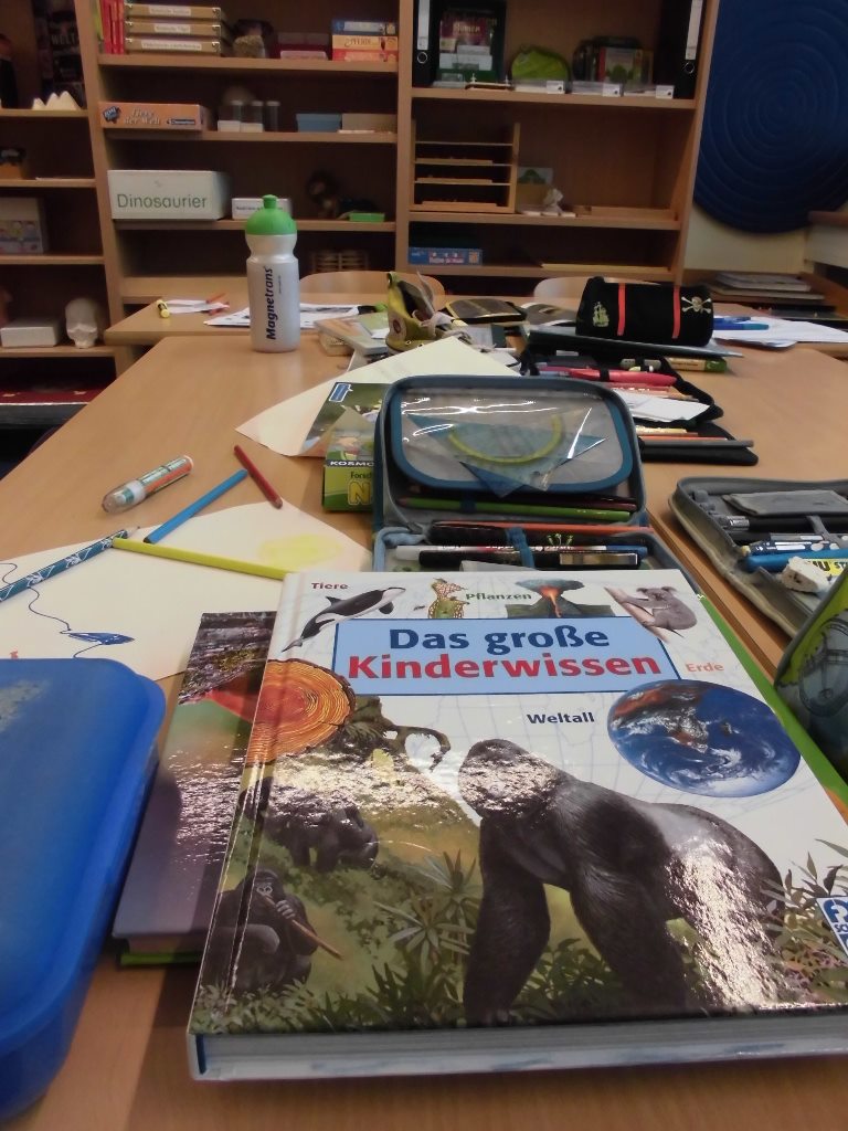 Ausgerüstet mit Büchern, Bildern, Ausdrucken, Schere, Leim, Papier und vor allem: Ideen, rücken die Kindern ihren Projekten auf den Leib. Kreisen sie ein, nageln sie fest, schreiben auf, malen, versuchen, erfinden.