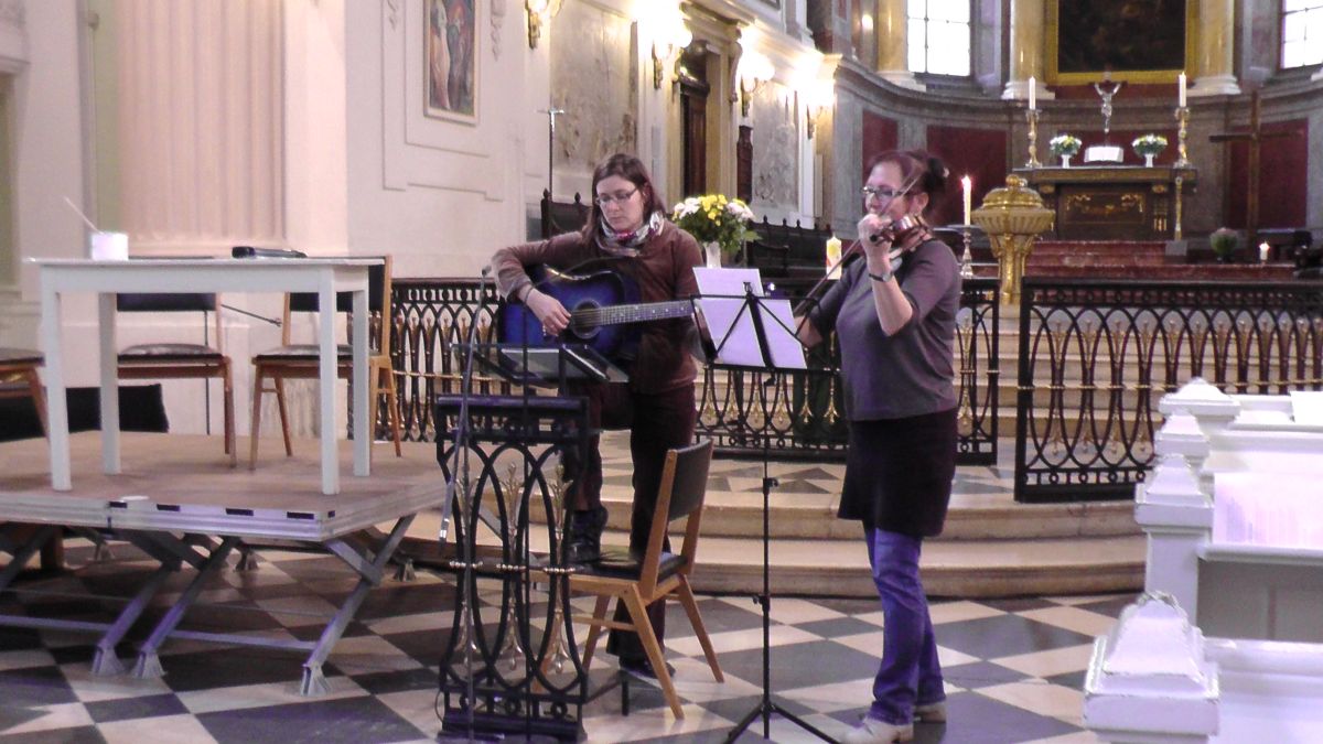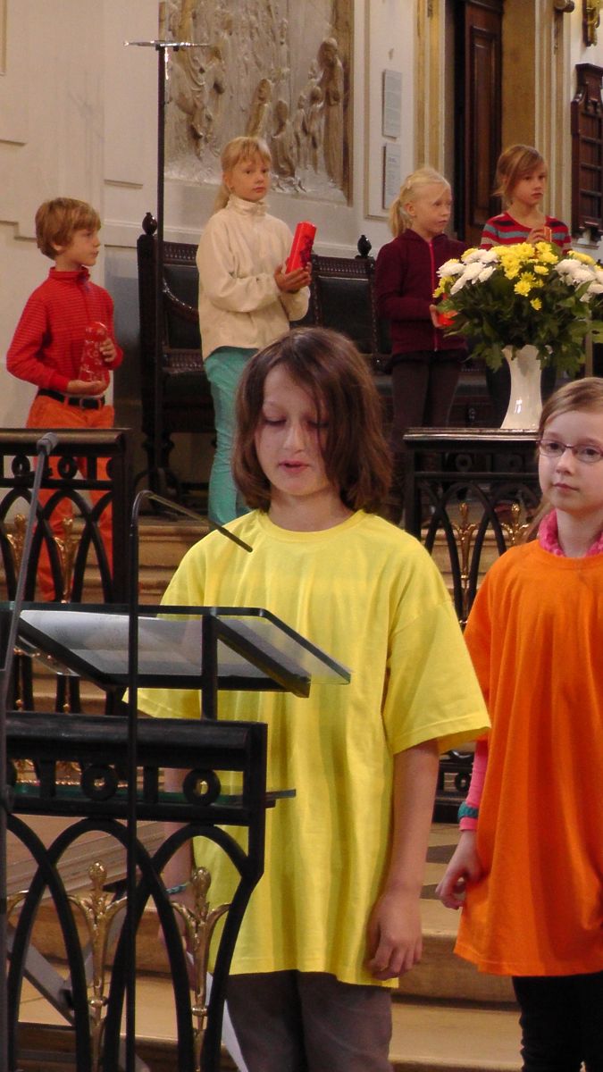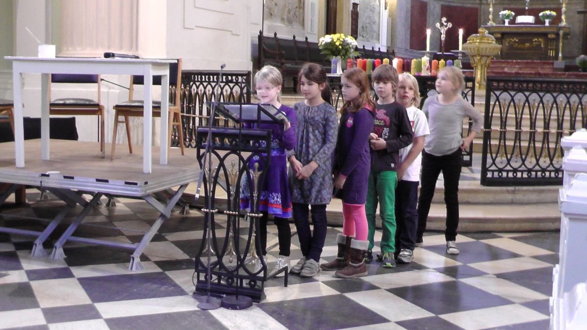 Durch den Gottesdienst führte Herr Hahn, den Gottesdienst selbst gestalteten Schüler der Montessorischule und des evangelischen Schulzentrums. Lieder, Lesung, Fürbitten, das besagte Spiel (s.u.) und eine kleine Ansprache dazu - fertig war das Friedensgebet.