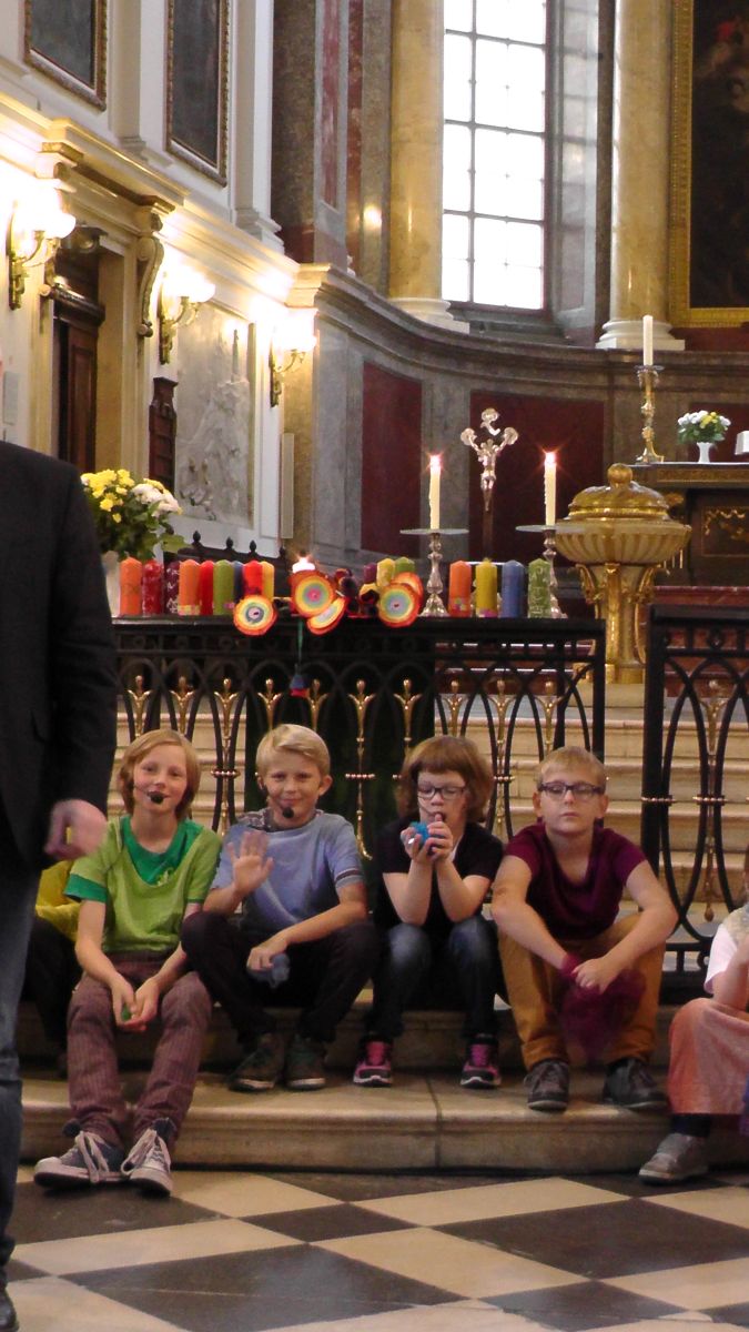 Alle Mann von Bord, in die Boote, auf in die Stadt, hinein in die Nikolaikirche, zum Friedensgebet der Kinder. Nicht nur die Großen feiern heute das Jubiläum "25 Jahre friedliche Revolution", sondern auch die Kleinen beschäftigten sich intensiv mit dem "Frieden".