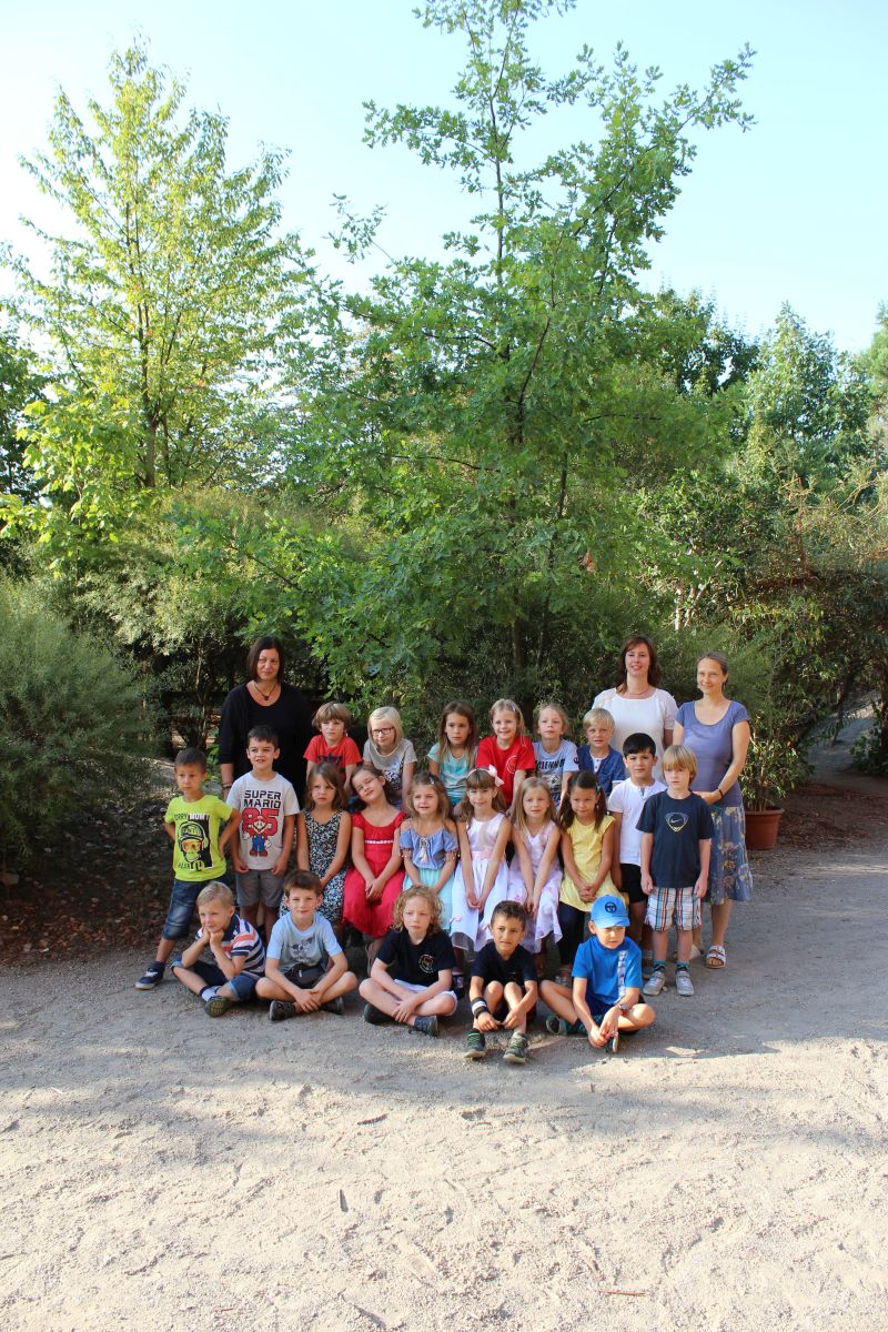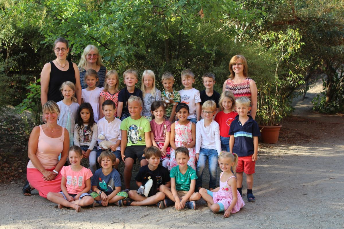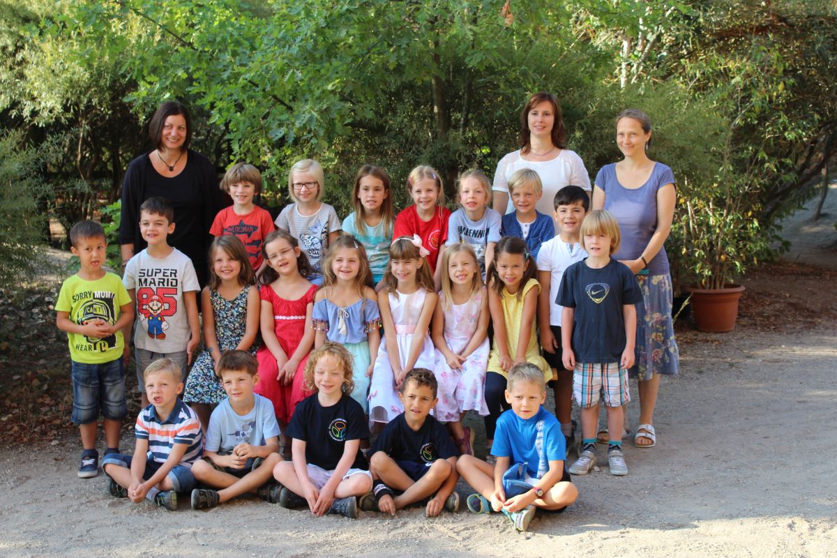 Aber warum zwei erste Klassen? Es sind doch acht Klassen! Stimmt, in der Freiarbeit sind in jeder Klasse nur 5-7 neue Erstklässler. Aber im Fachunterricht sitzen die Kinder vom gelben Flur (1a) und die vom roten Flur (1b) zusammen.