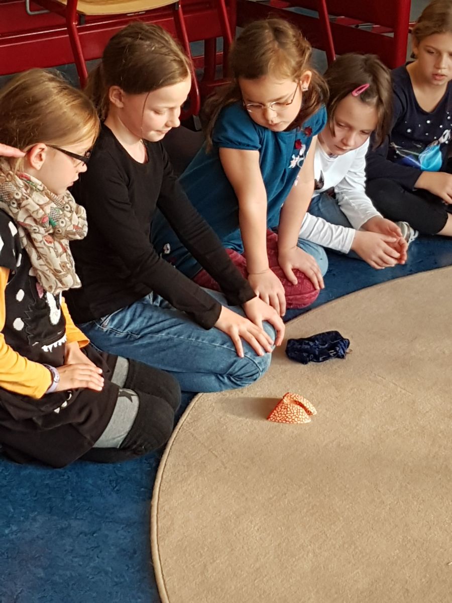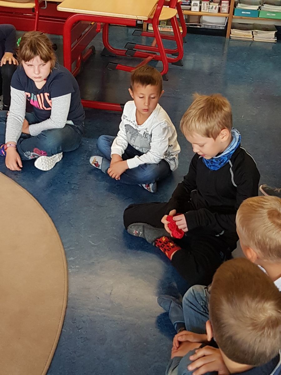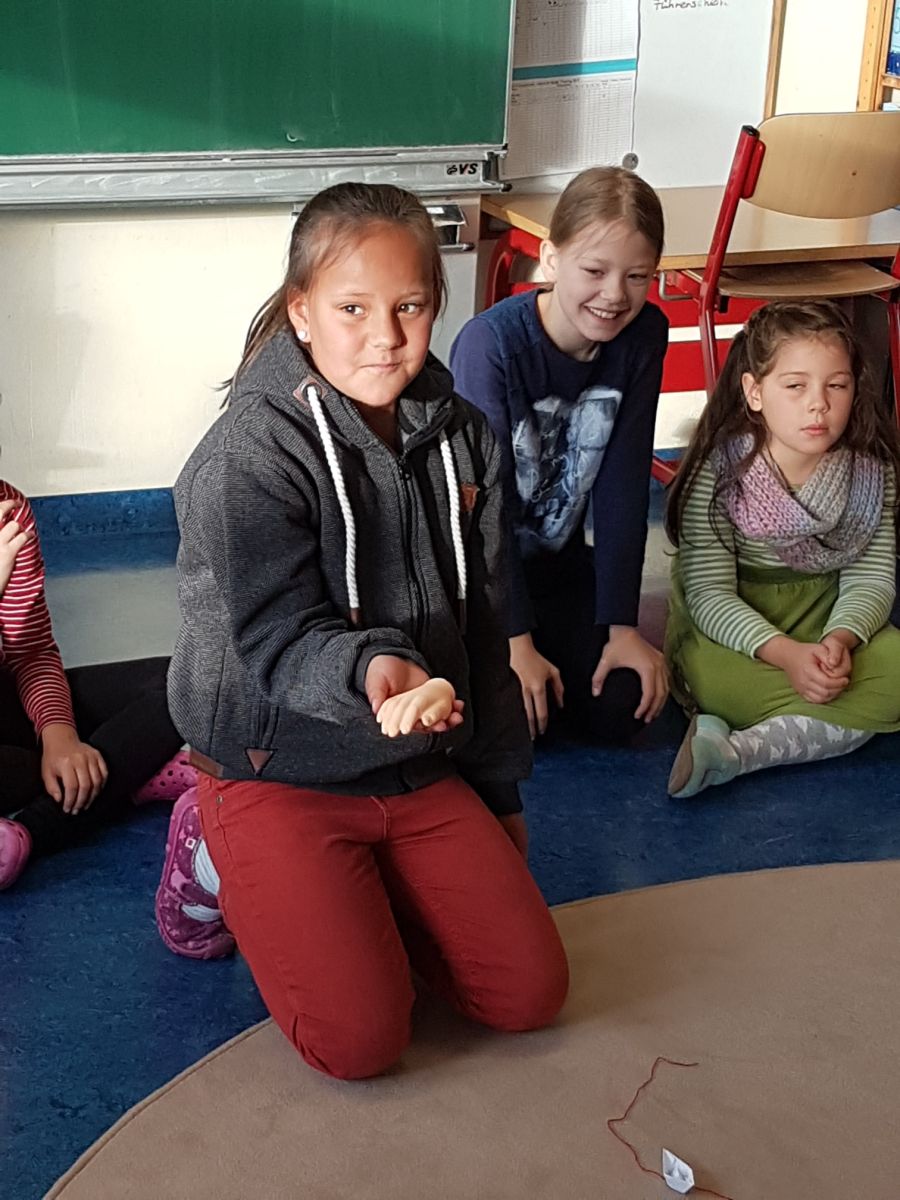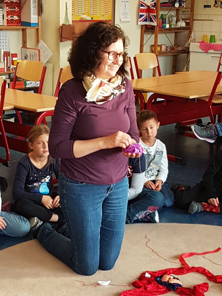 Zum Beispiel bei der großen Erzählung nach Montessori "Der Große Fluss", bei dem es um den Aufbau und die Wirkungsweise des menschlichen Körpers geht. Der Fluss symbolisiert das Blut, das alle Organe mit Lebenswichtigem versorgt.