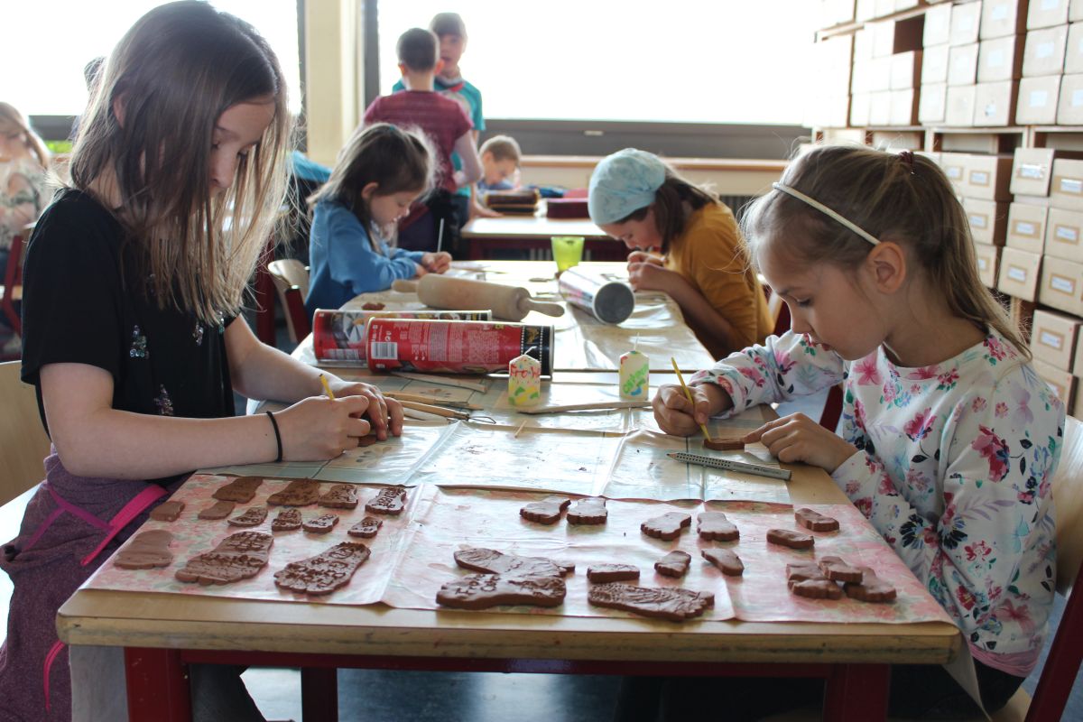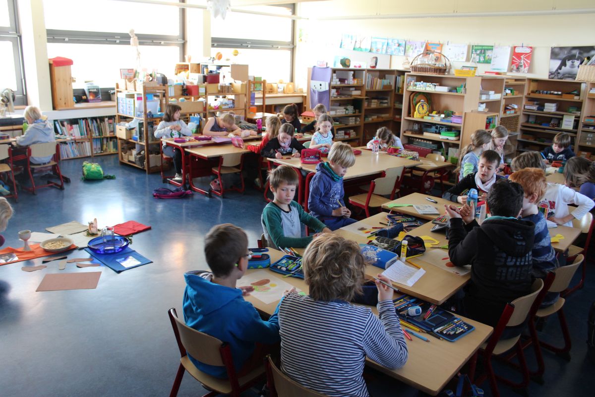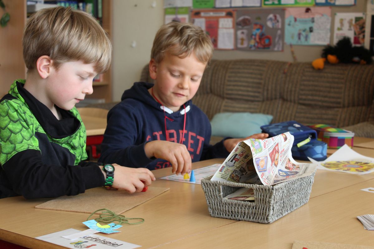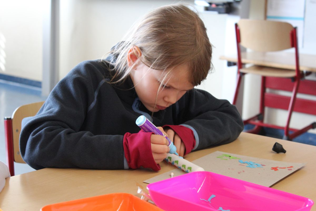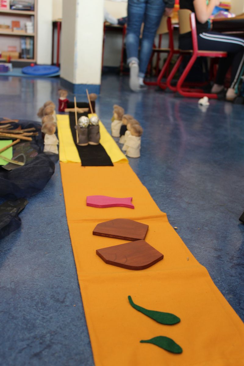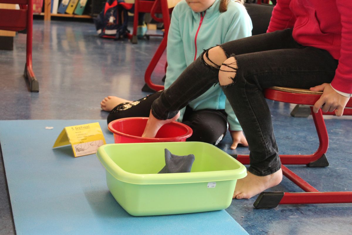 Nach einer geistlichen Zuwendung zum Thema gab es nach der Pause eine Art offenen Stationenbetrieb, bei dem die Kinder von Zimmer zu Zimmer gehen konnten. In jedem wurde zum Thema "Fuß" gearbeitet, gespielt, gebastelt, geschicklicht usw.