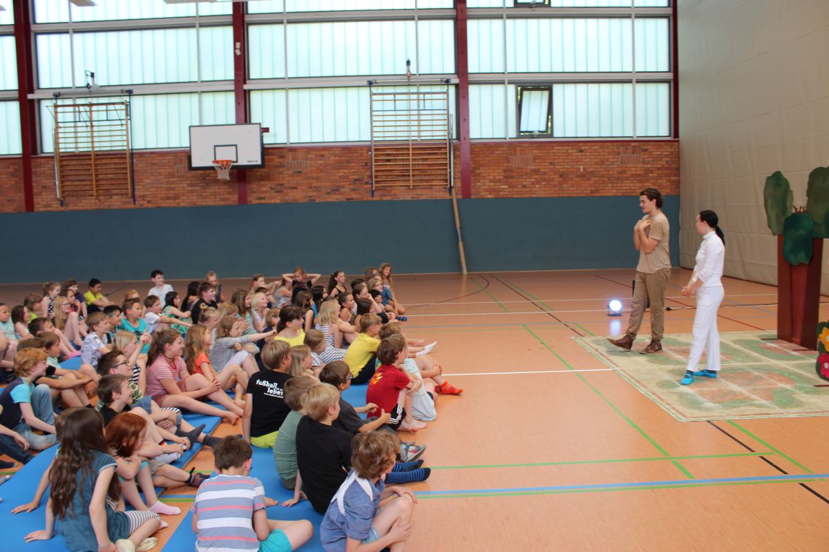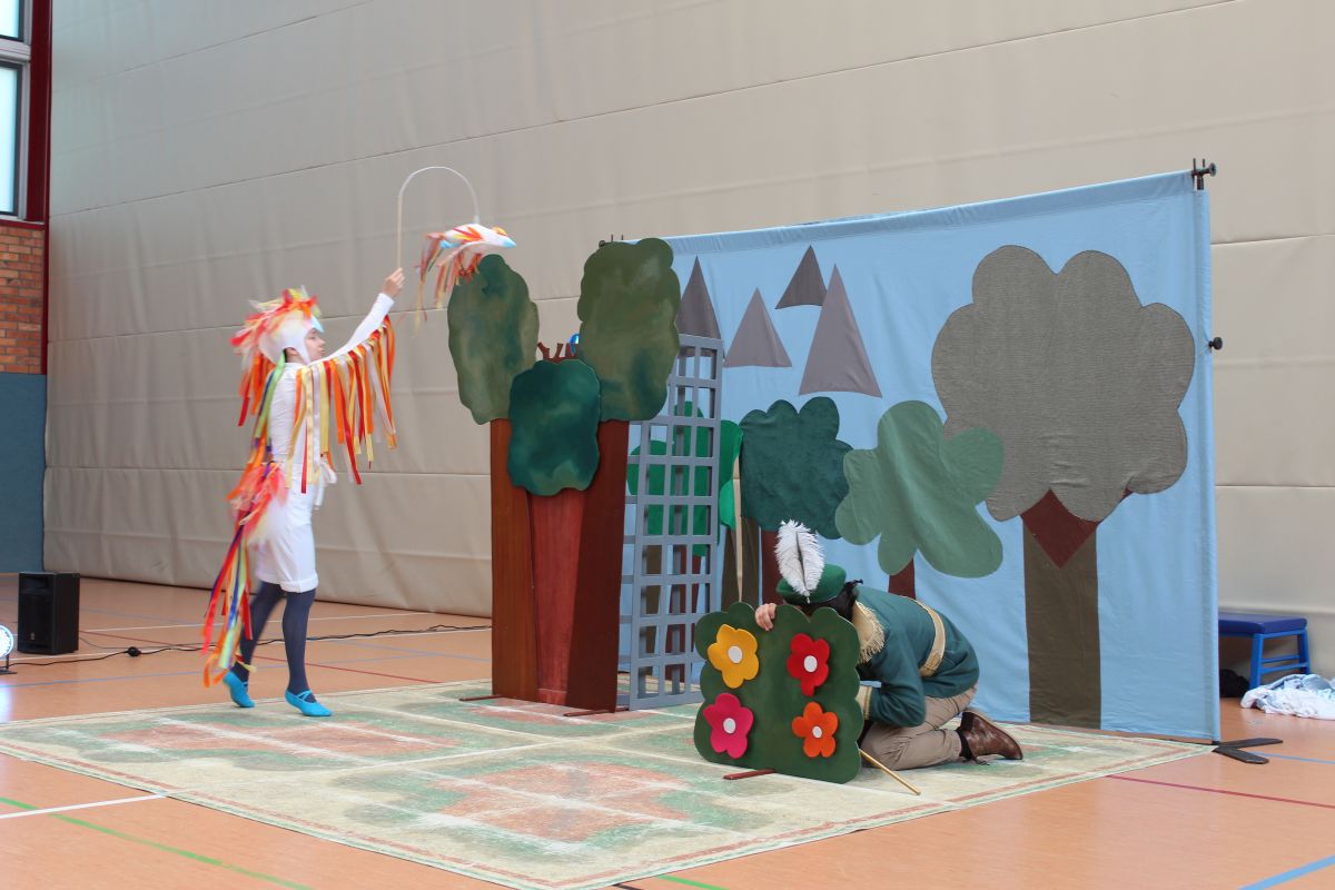 Doch halt, hier stimmt etwas nicht! Es war ja englisches Theater!!! Das "White Horse Theatre" also zu Gast mit dem Stück "Firebird", für alle Dritt-und Vierklässler.