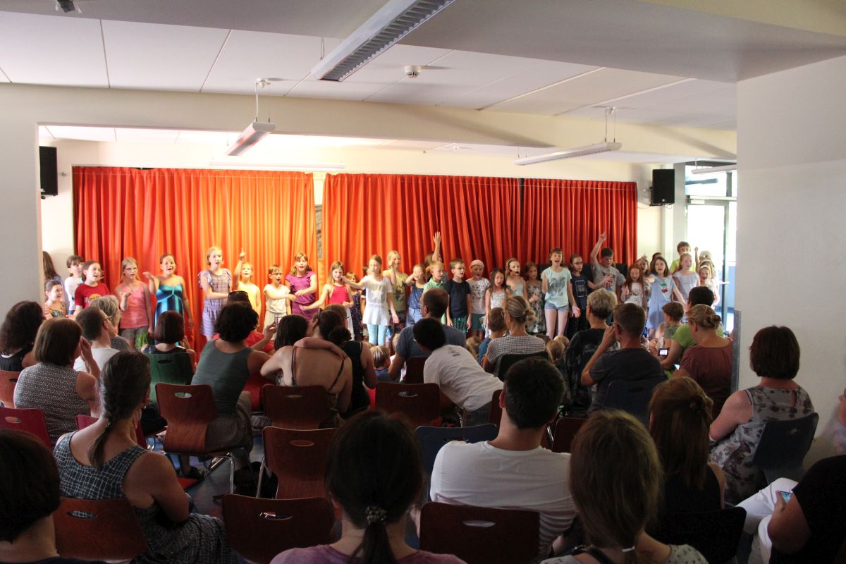 Am heutigen Nachmittag trotzten die Kinder des Chores sowie viele Eltern und Verwandte der Hitze und ließen sich auf das Musical "Ich bin ich" in der Aula ein.