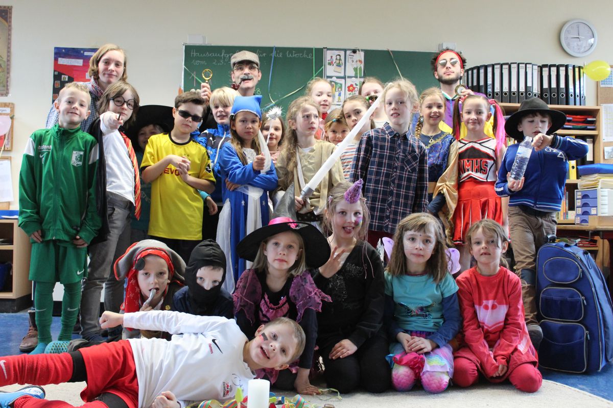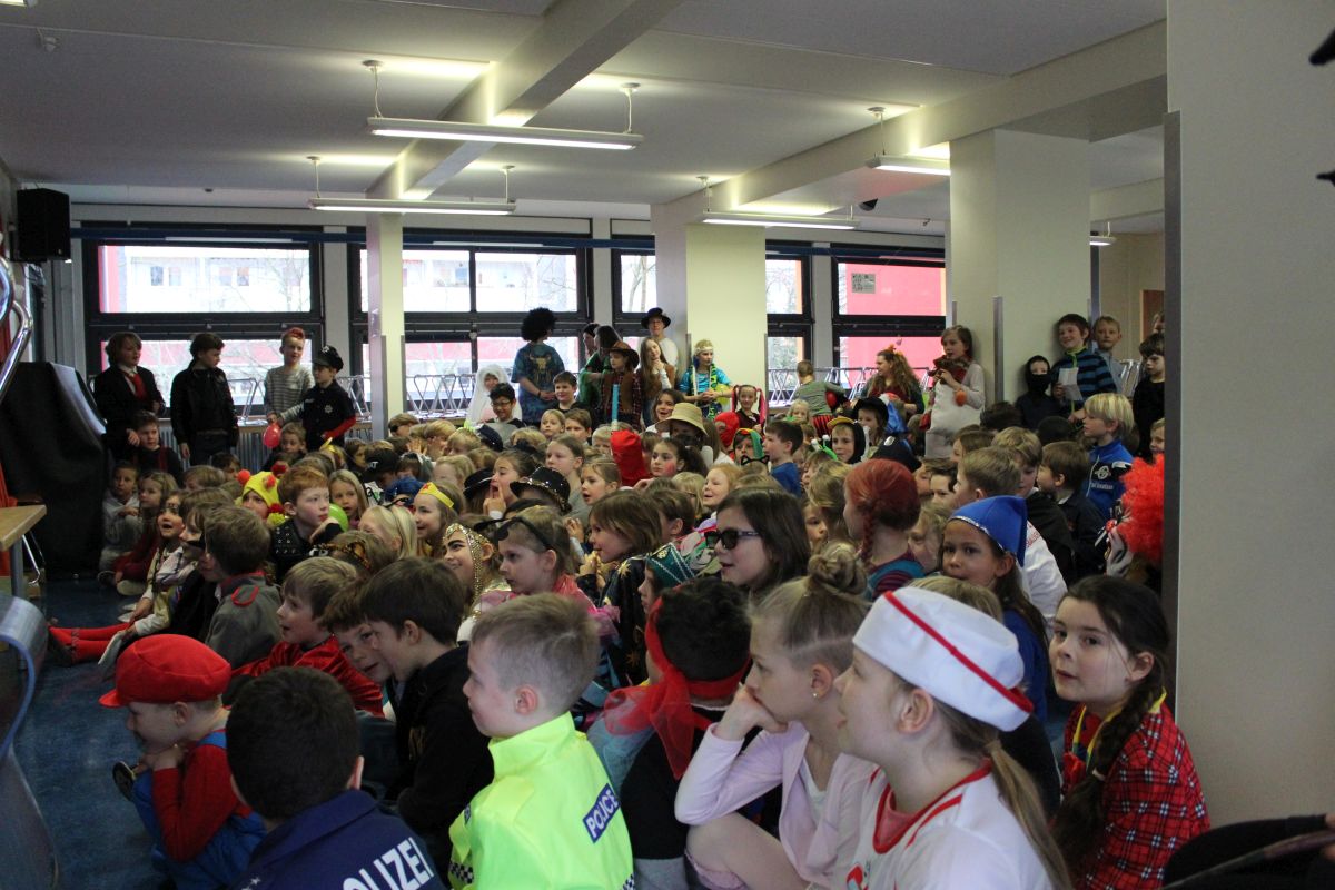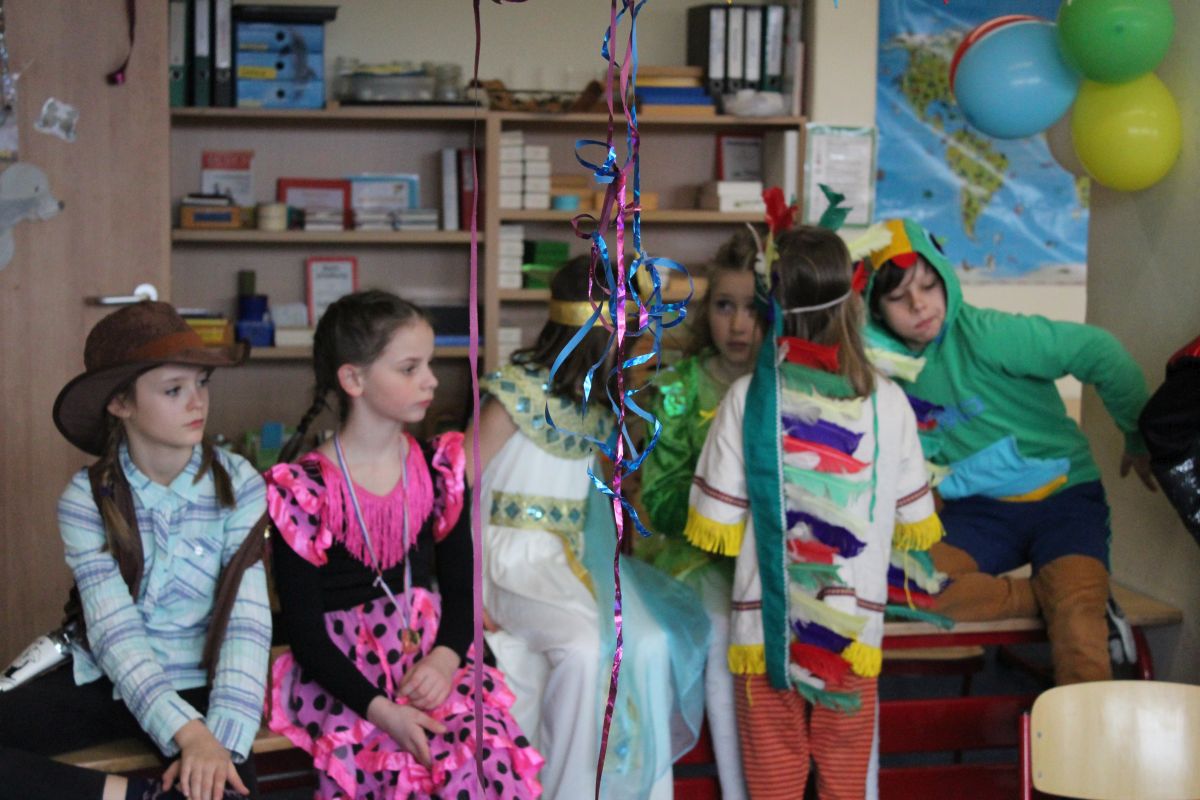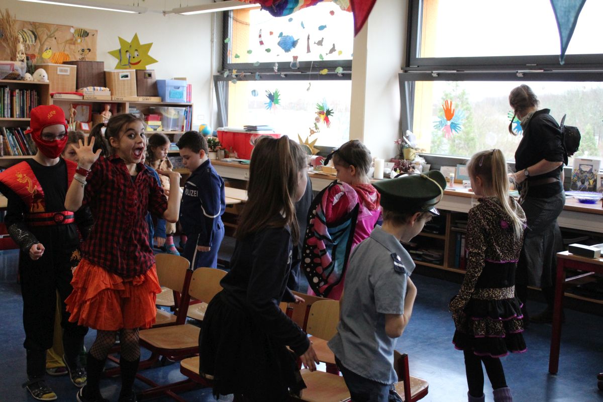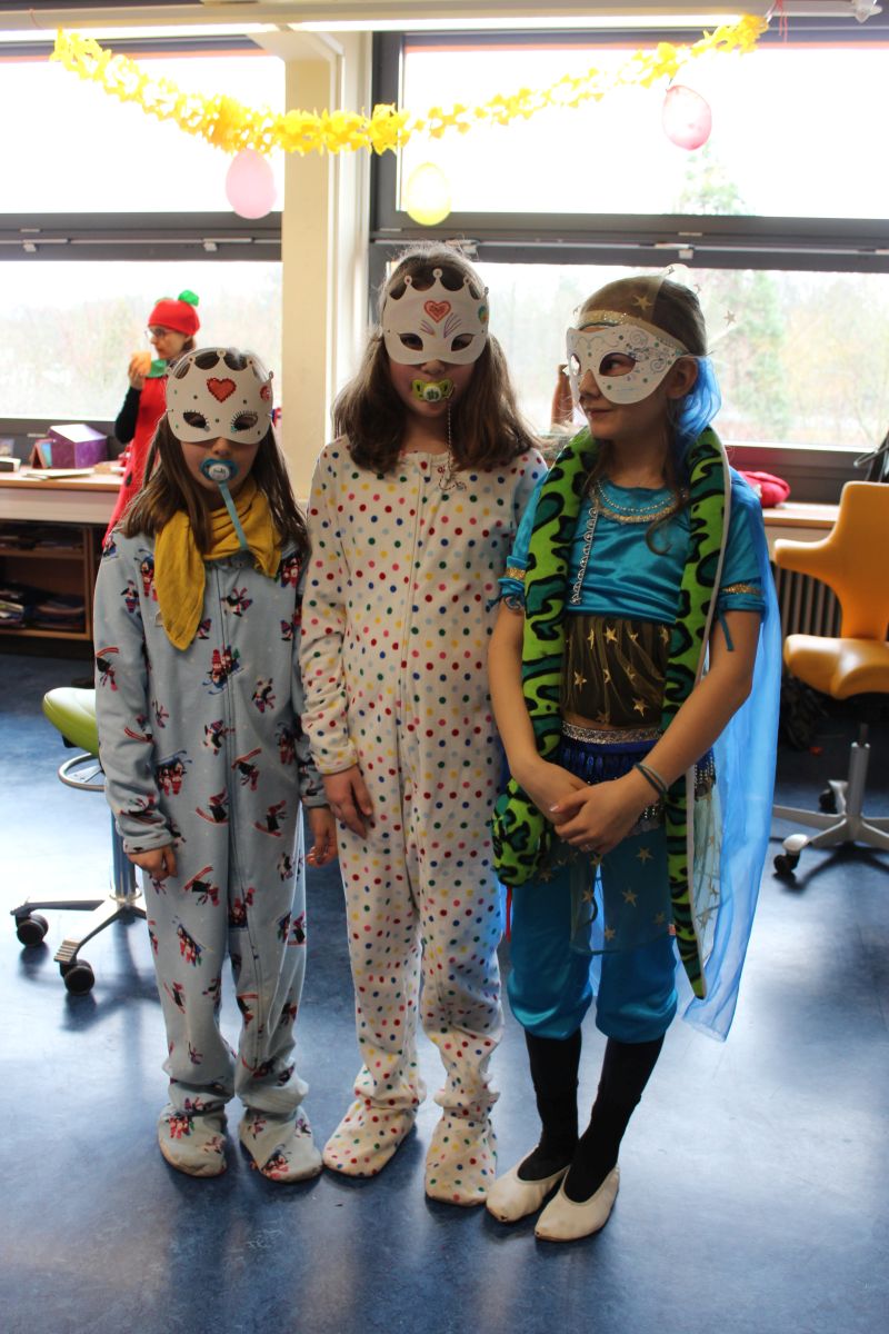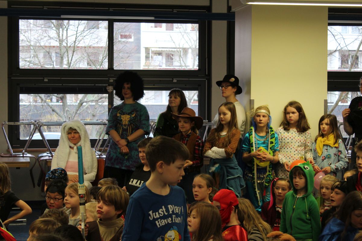 Der Startschuss dafür fiel in den Klassen: die Kinder in ihren Kostümen wurden bestaunt und vorgestellt, es gab Spiele, Tanz und Polonaise durch die Klassen bis zur vorgezogenen Frühstückspause - natürlich mit leckeren Pfannkuchen.