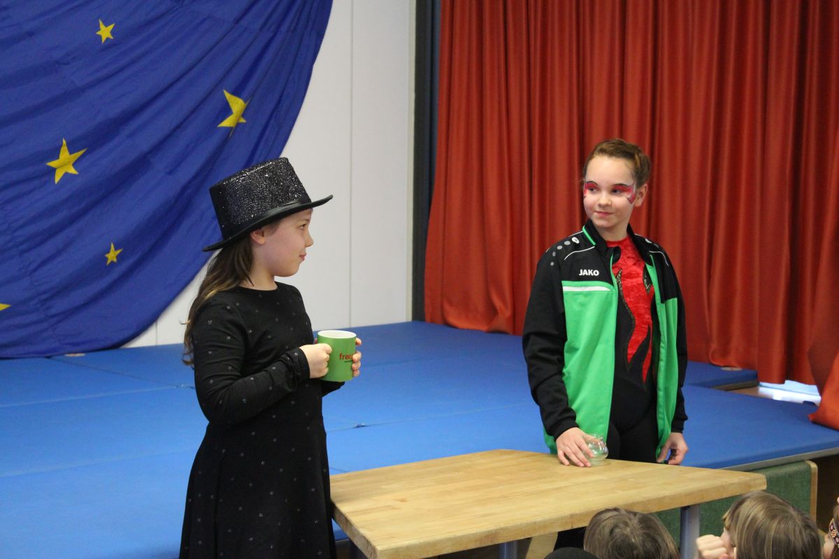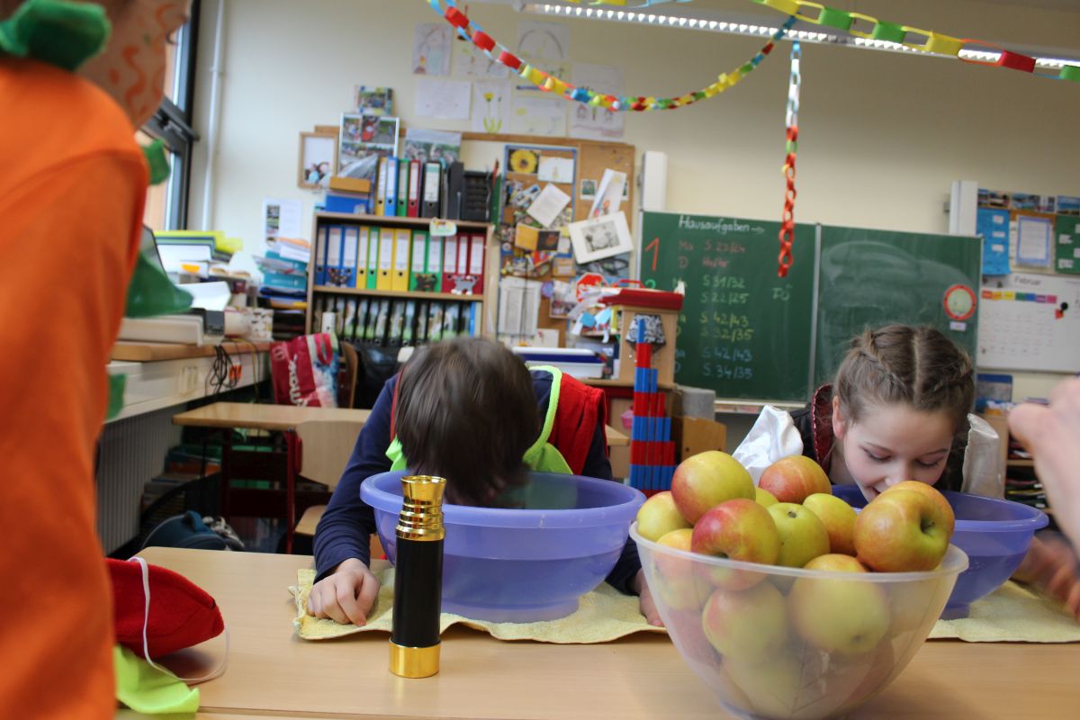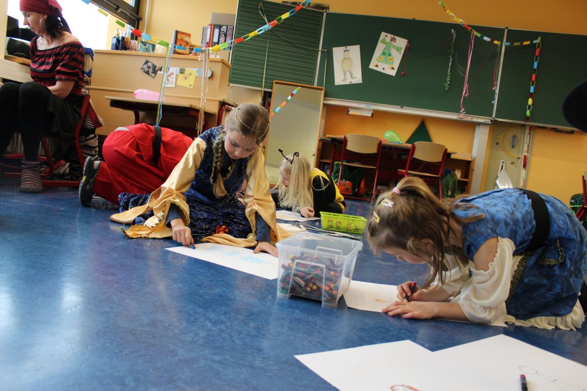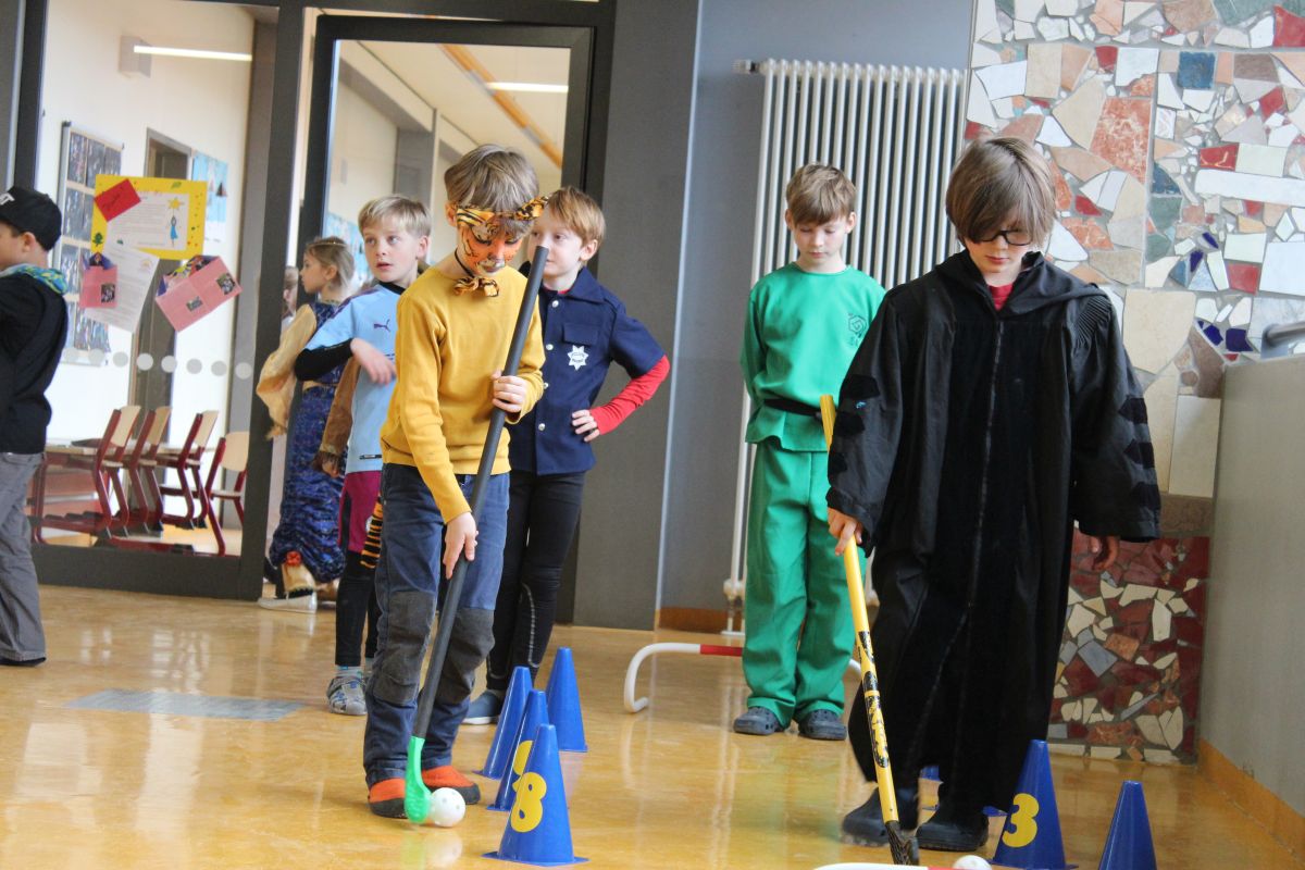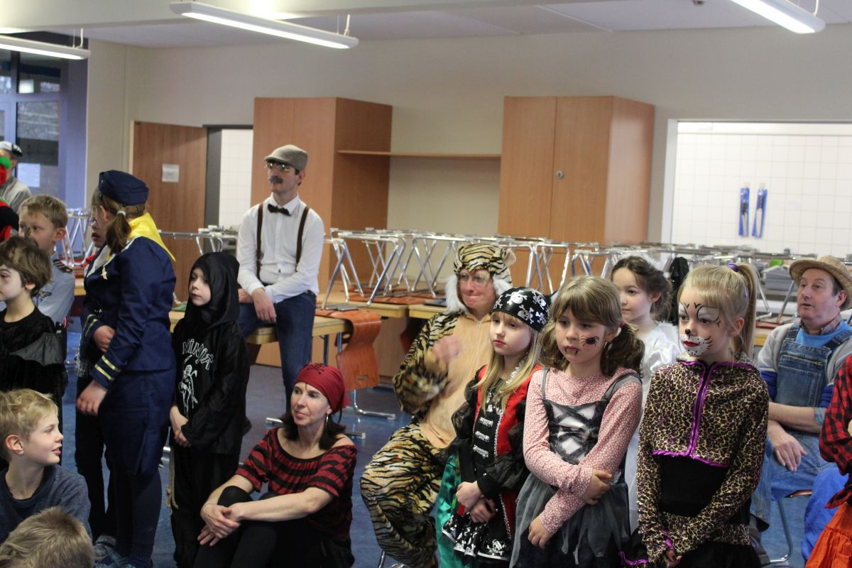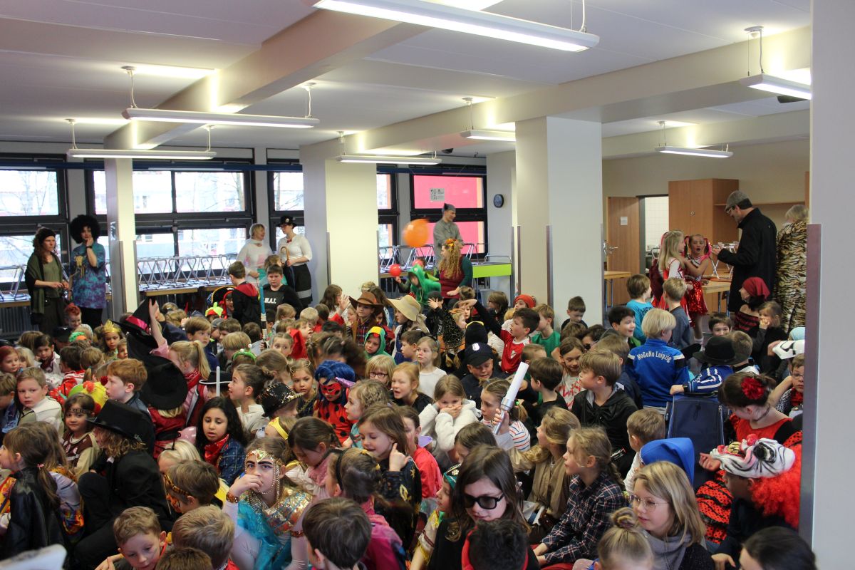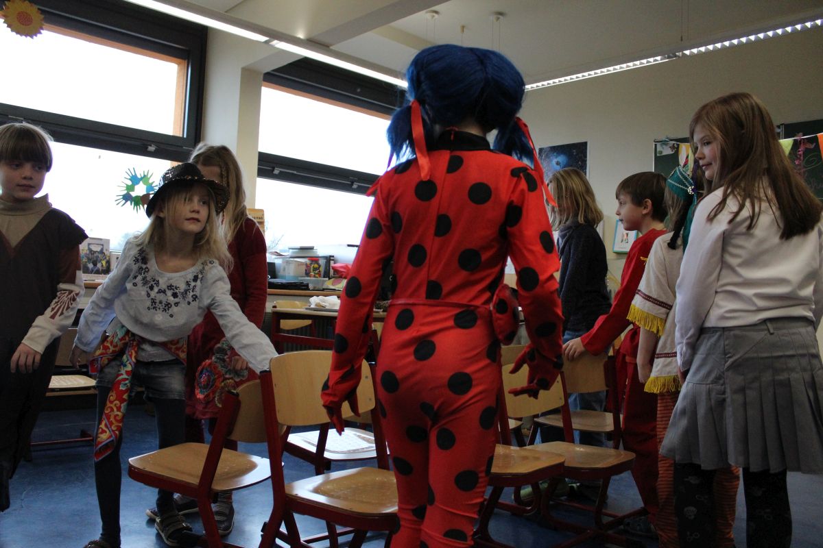 Der Startschuss dafür fiel in den Klassen: die Kinder in ihren Kostümen wurden bestaunt und vorgestellt, es gab Spiele, Tanz und Polonaise durch die Klassen bis zur vorgezogenen Frühstückspause - natürlich mit leckeren Pfannkuchen.