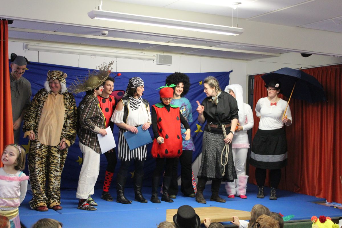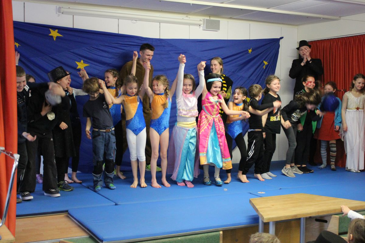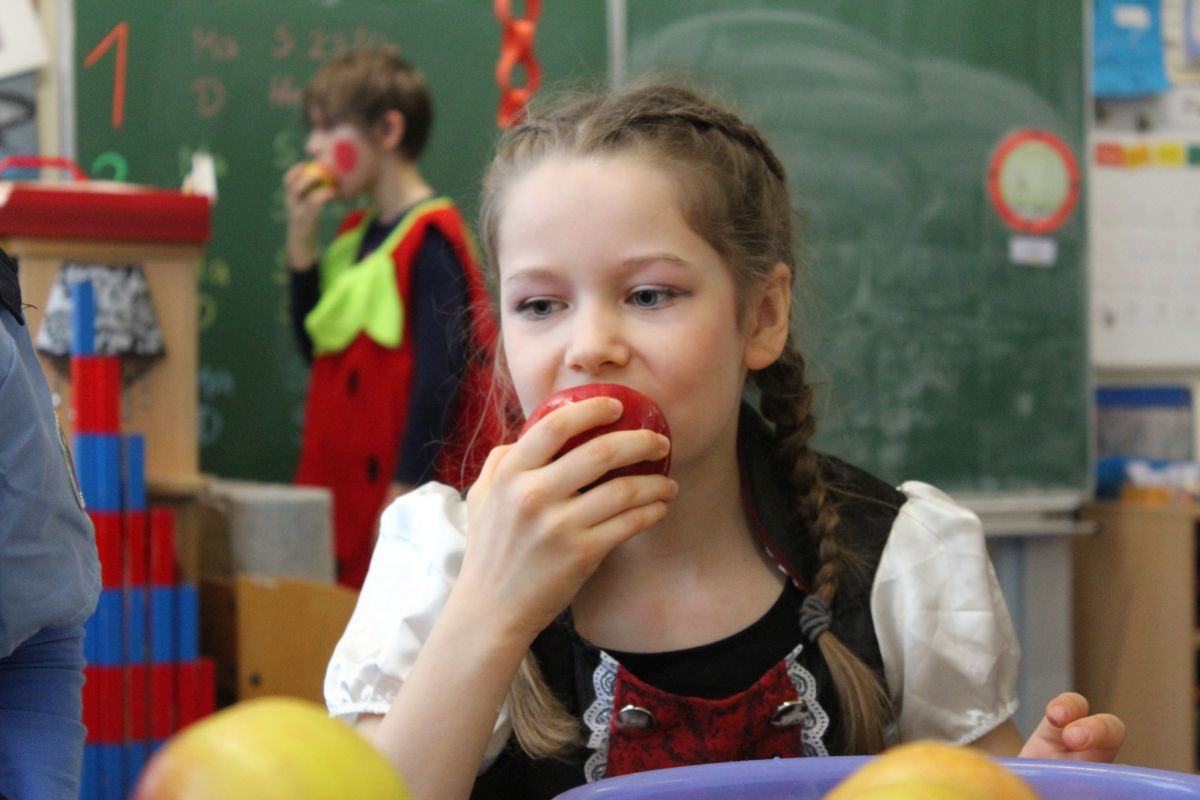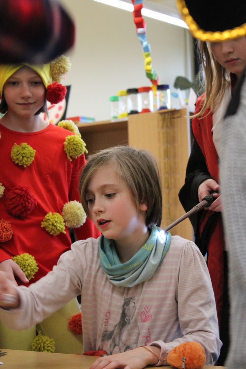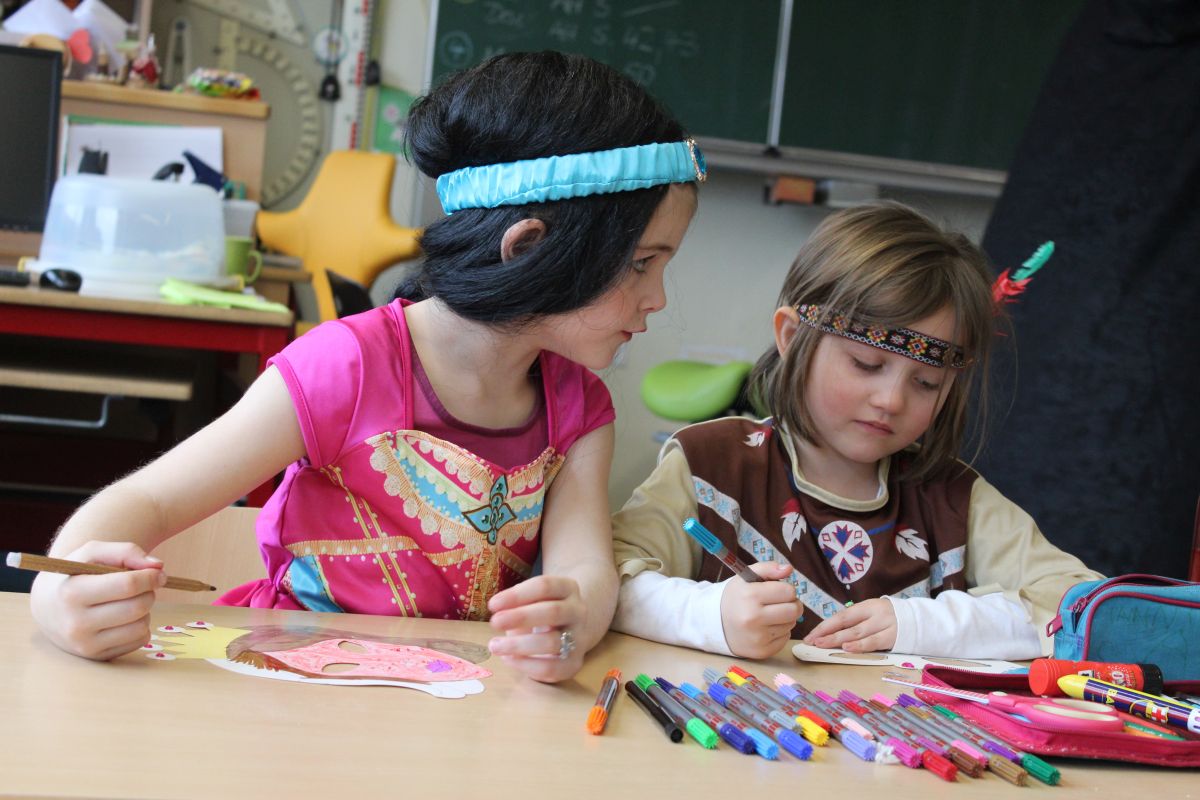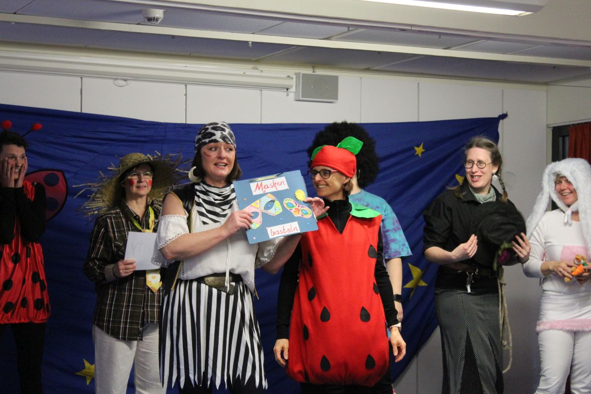 Der Startschuss dafür fiel in den Klassen: die Kinder in ihren Kostümen wurden bestaunt und vorgestellt, es gab Spiele, Tanz und Polonaise durch die Klassen bis zur vorgezogenen Frühstückspause - natürlich mit leckeren Pfannkuchen.