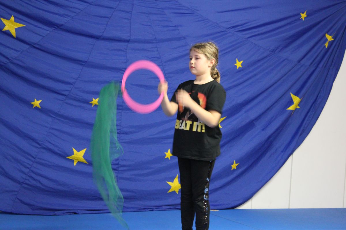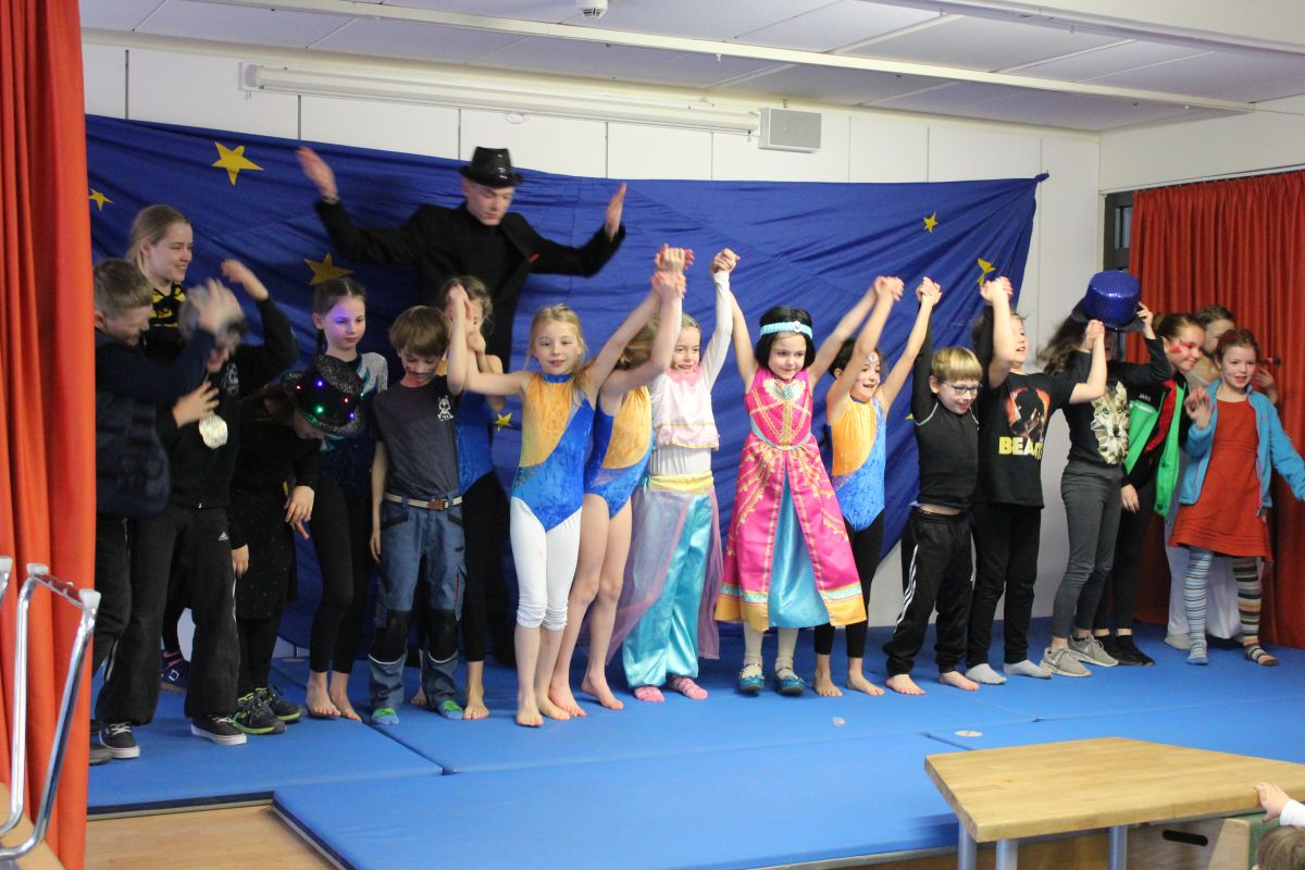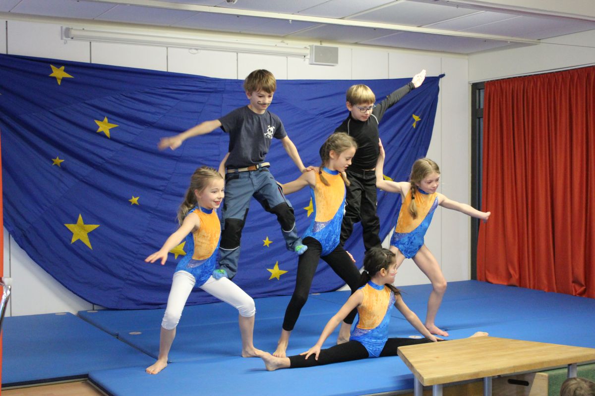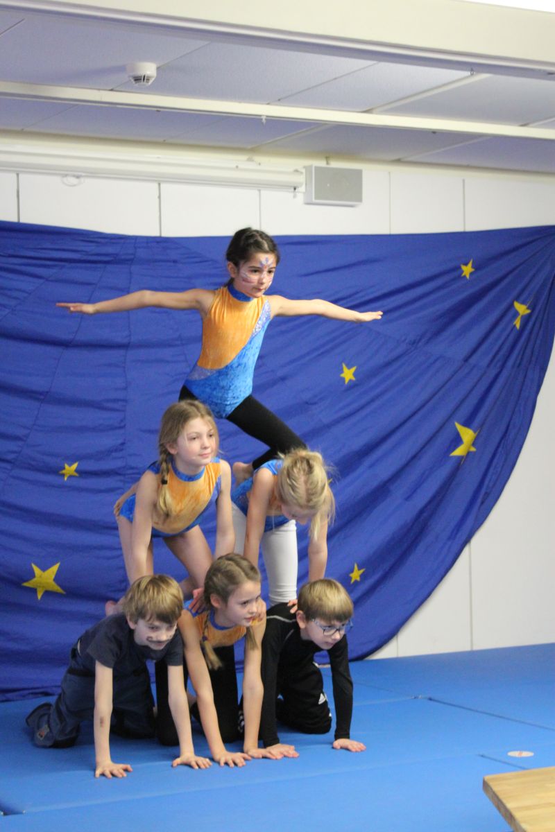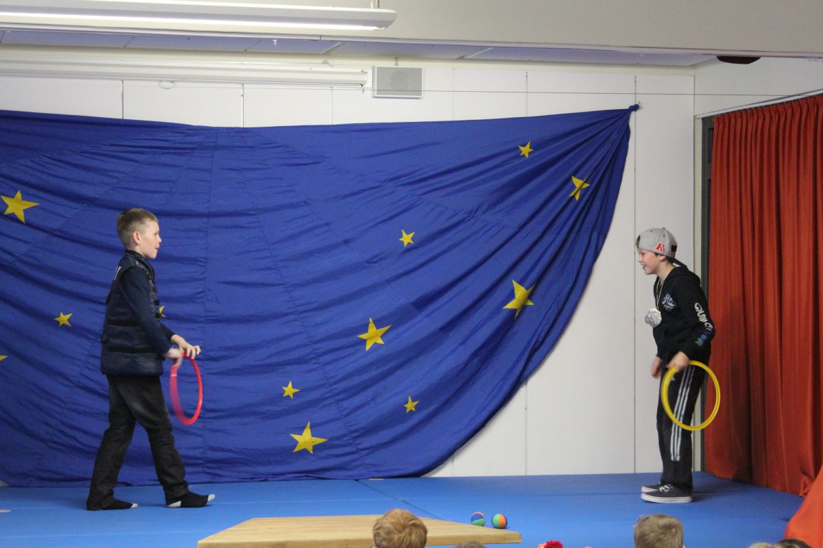 Dort angekommen startete das Zirkus-Programm, das im Ferienhort eingeübt worden und schon einmal dort aufgeführt worden war. Die Zuschauer waren begeistert von Artistik, Jonglage, Tanz und Zauberei und forderten Zugabe.