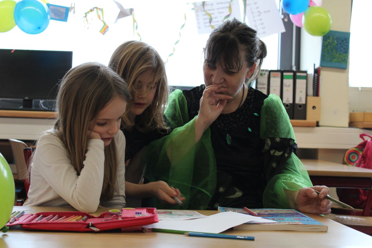 Für die Schüler ging es dann richtig rund: ob Basteln, Spielen, Tanzen, Raten oder Zuhören, selbst auf dem Flur gab es Angebote zum Mitmachen.