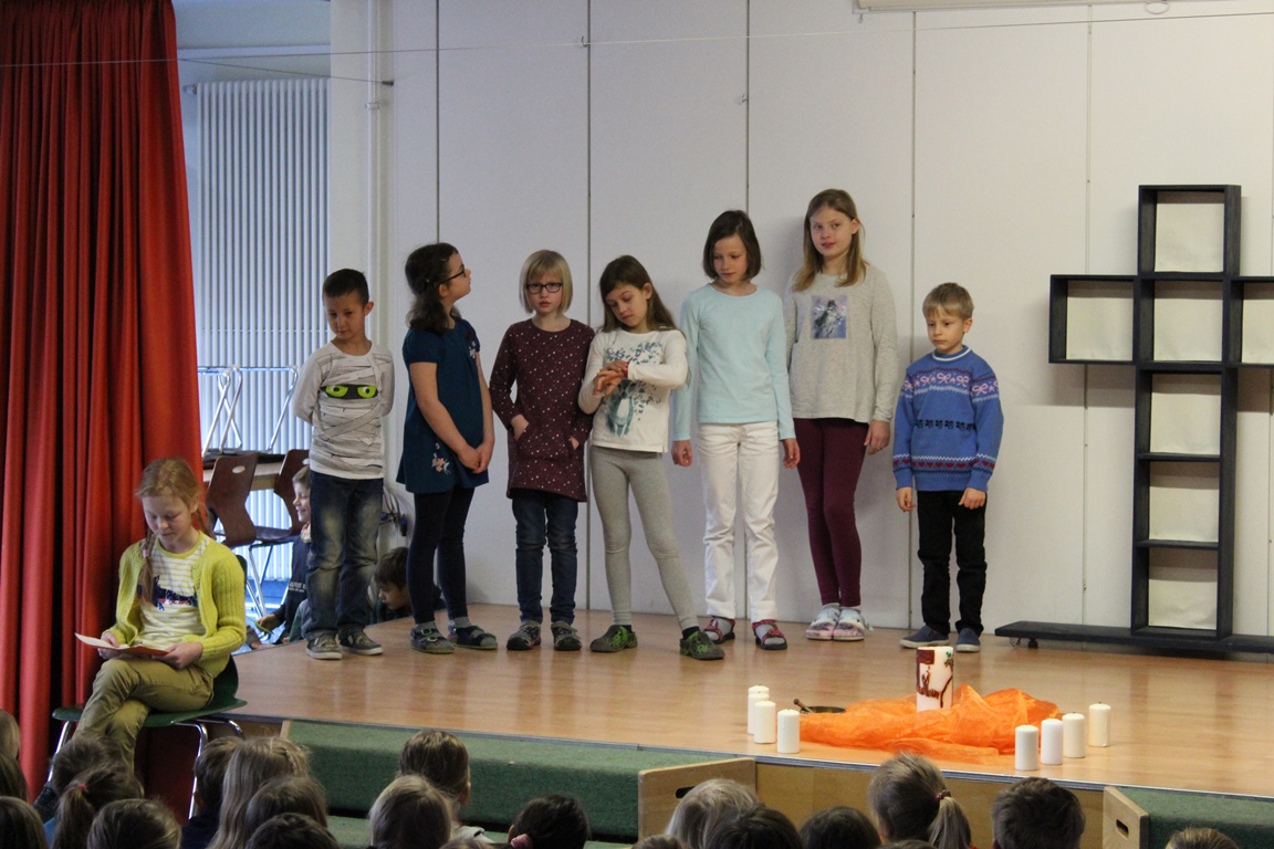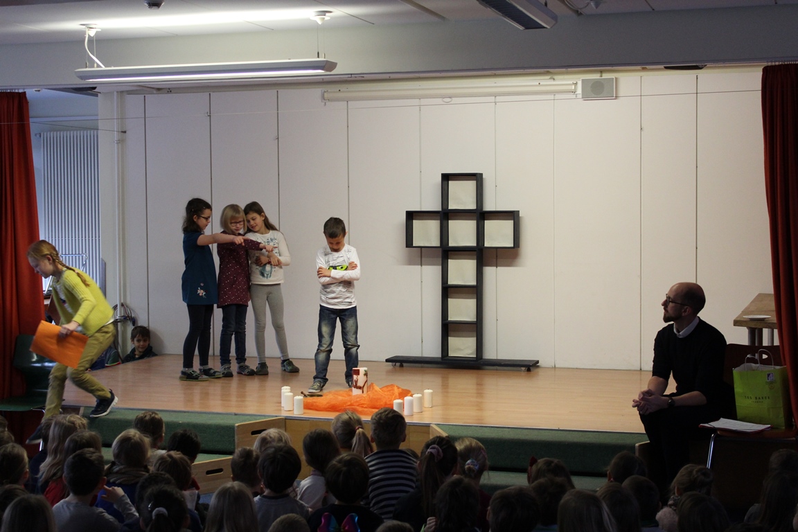 Die Mäuschen verantworteten heute die Andacht zur Fastenzeit. Mit eindrücklichen Anspielen zeigten die Kinder, was es bedeutet, ausgeschlossen und allein zu sein.