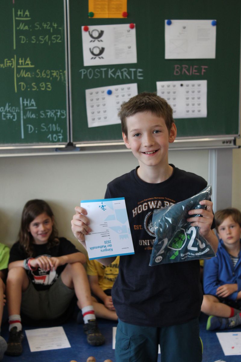 Alle Ergebnisse wurden übermittelt und diese Woche trafen die Urkunden und kleinen Gimmicks (ein Schlangen-Würfel) ein. Auf Preise wurde dieses Jahr aufgrund der Vergleichbarkeit verzichtet, Urkunden bekam jeder. Ein besonders großer Känguru-Hüpfer musste aber doch noch gewürdigt werden, denn ein Schüler aus der Schmetterlingsklasse schaffte es doch tatsächlich, alle 120 Punkte zu ergattern, d.h. alle Aufgaben richtig zu rechnen. Herzlichen Glückwunsch Korongaru!