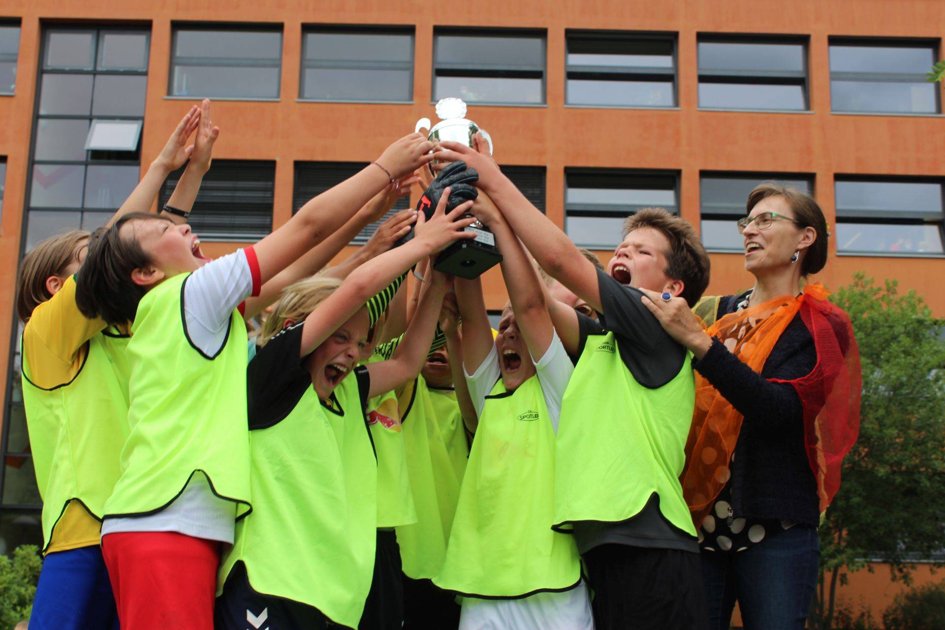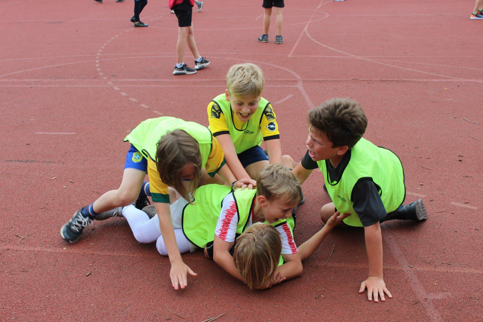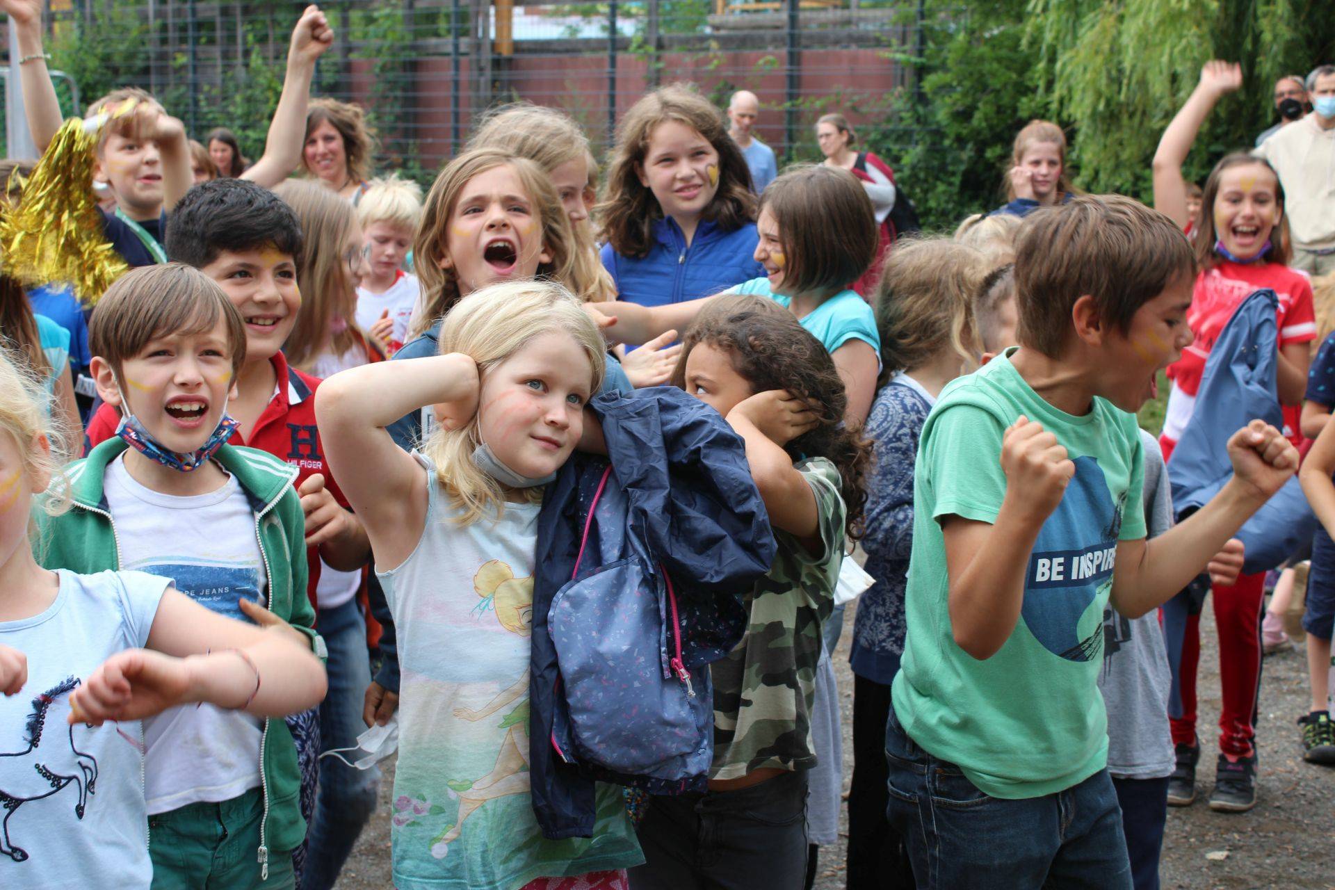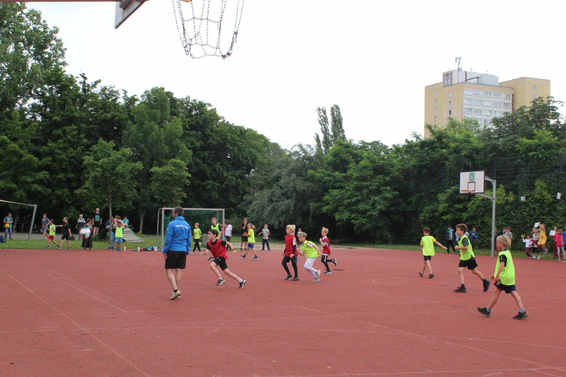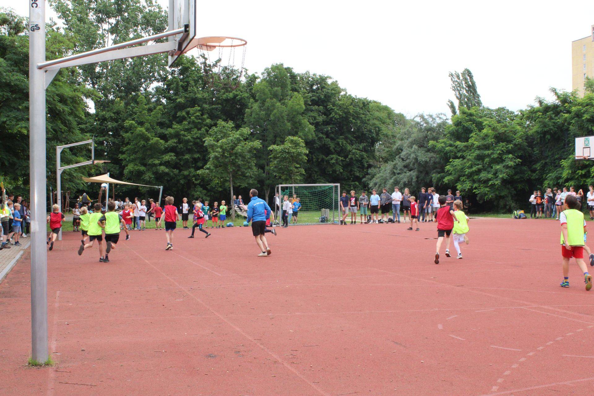 Begleitet wurden sie dabei von allerhand Schlachtenbummler in gelb und rot, vielen neutralen Zuschauern, ehemaligen Schülern der Grundschule und auch vielen Erwachsenen, die sich das Spektakel nicht entgehen lassen wollten. Angeleitet wurden sie von Ingo, dem Schiedsrichter sowie Micha, der das Spiel zusammen mit Frau Kunze-Busch diesmal organisierte.