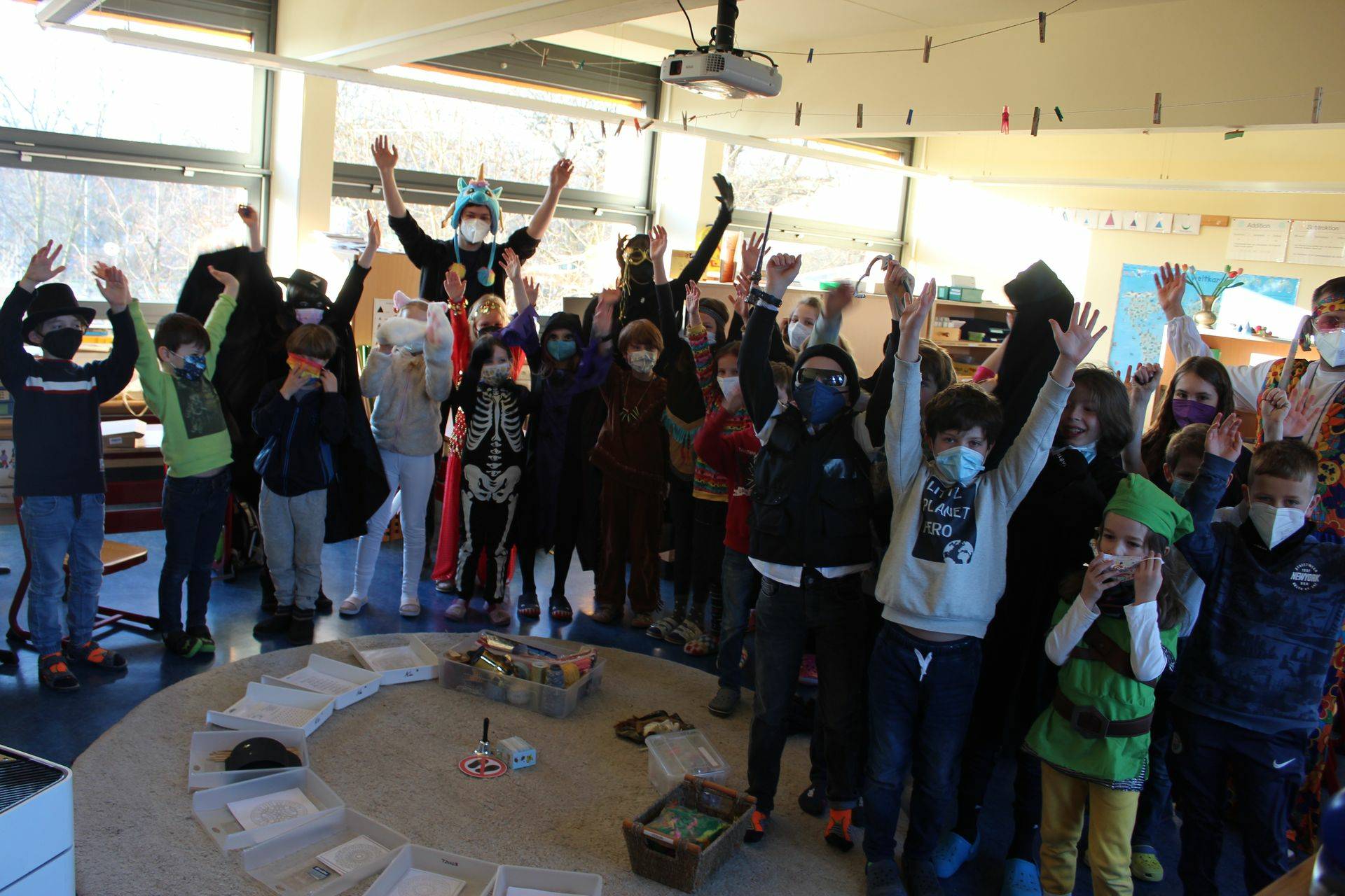 Neben den bekannten und beliebten Spielen wie z.B. Polonaise, Stuhltanz und Stopptanz probierten sich manche Klassen auch an einem Room Escape aus - sehr knifflig!