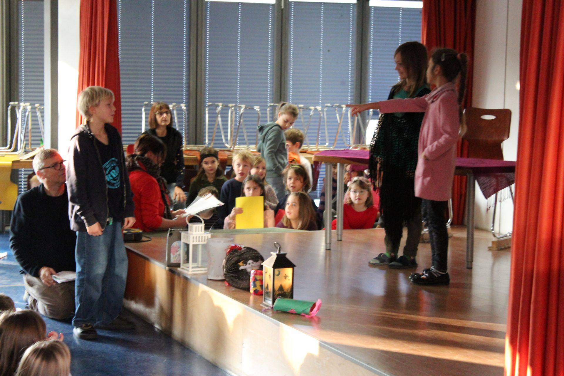 Dieses von den Mäuschen dargebotene Anspiel griff Herr Körner noch einmal auf und verband es mit dem Bibelvers "Ihr seid das Licht der Welt". Hinausgehen, Gutes tun, an andere denken und somit die Welt jedesmal ein Stückchen heller machen, das kann jeder von uns. Als Erinnerung daran durfte jeder Klasse im Anschluss eine kleine Glaslaterne mitnehmen und darüber sprechen, wo man wie helfen, teilen und Licht bringen kann.