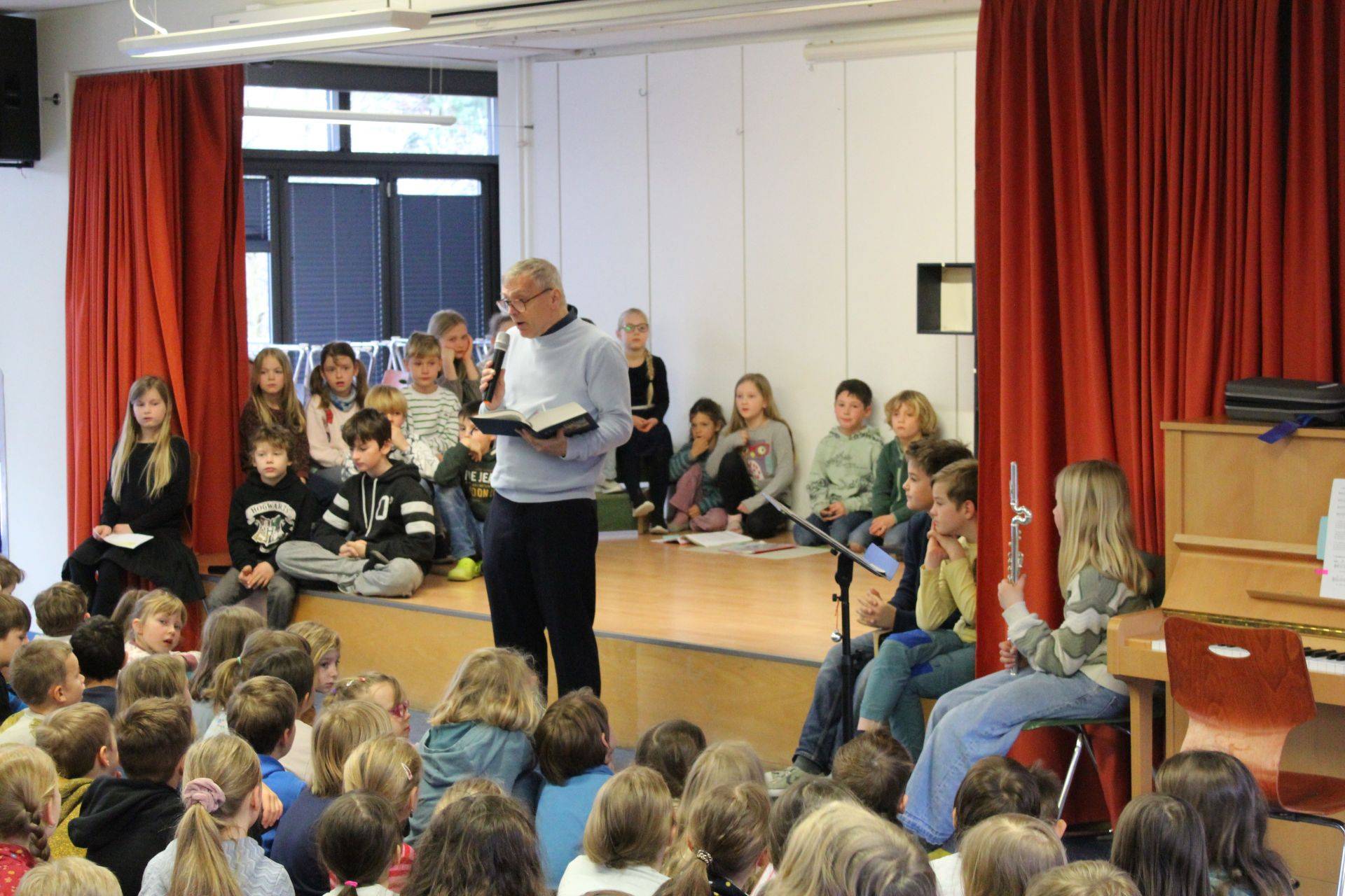 Was haben Steine mit der Karwoche zu tun? Sehr viel, das sahen und hörten die Kinder heute in der Andacht, die die Regenbogeklasse und Schulseelsorger Herr Körner vorbereitet hatten.