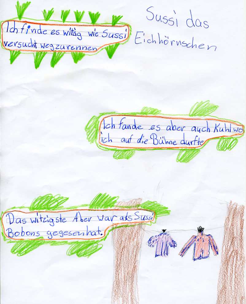 Wahrscheinlich kennt nun jeder der Dritt-und Vierklässler Susie, das Eichhörnchen. Denn es war heute hier in der Grundschule, in der Aula. Gemeinsam mit seiner Mutter (Mrs. Squirrel) und noch einem Gesellen aus dem Wald, dem bösen Fuchs (Mr. Fox).
