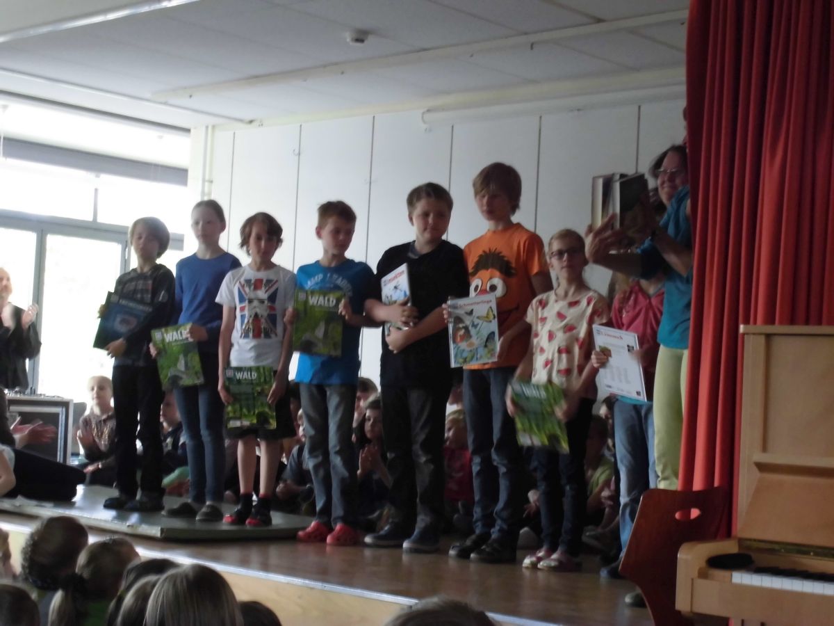 Von einem Teil des Geldes wurden ursprünglich für jede Klasse des Gewinner-Flurs ein Buch angeschafft. Da aber beide Flure ihren Container voll hatten, wanderten diese vier Bücher in die Bibliothek und jede Klasse erhielt stattdessen ein Was ist Was-Buch.