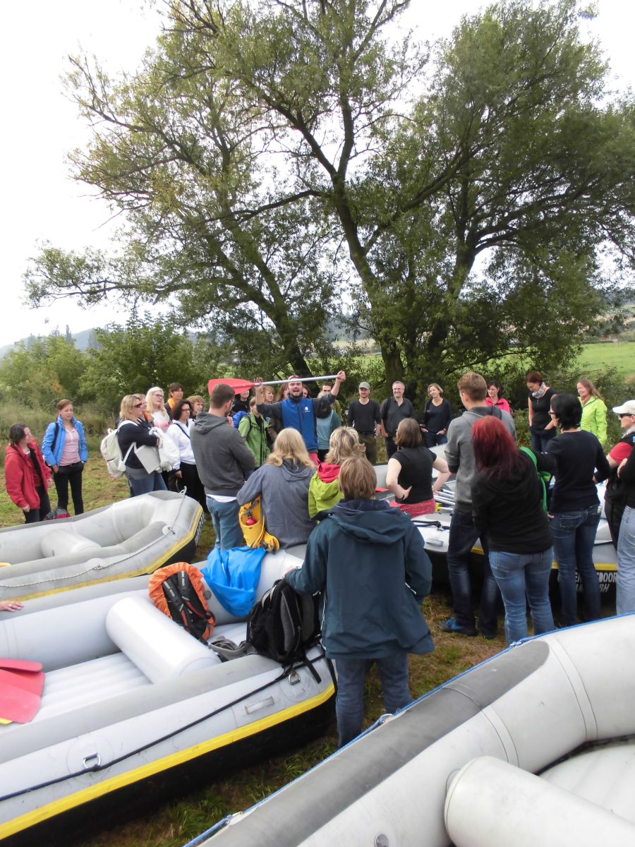 Zehn Schlauchboote, nicht rot wie im bekannten Schlager, standen bereit und warteten auf Befüllung. Nach kundiger Einweisung durch den Fachmann, verbunden mit Hinweisen auf Risiken und Nebenwirkungen einer solchen Bootsfahrt, hieß es tragen und (zu) Wasser lassen.