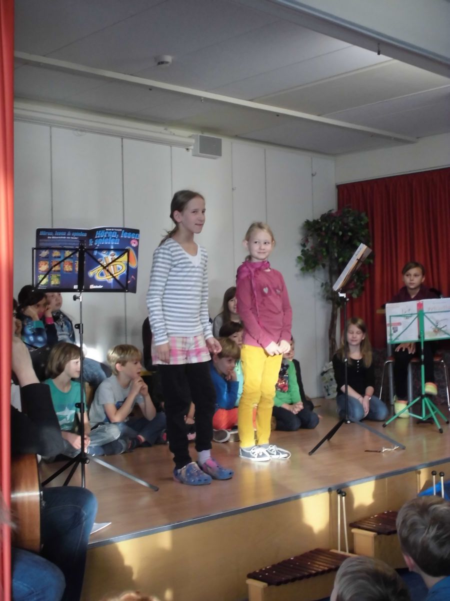 und noch viel mehr, was den Kindern und Klassenlehrerinnen noch so einfällt. Termin für diese "Unterhaltungsshow" ist immer Freitag Morgen in der Aula. Zu den Morgenkreisen kommen dann noch die Andachten und so ist es über das Jahr selten langweilig und immer was los, wie man sehen und hören kann.
