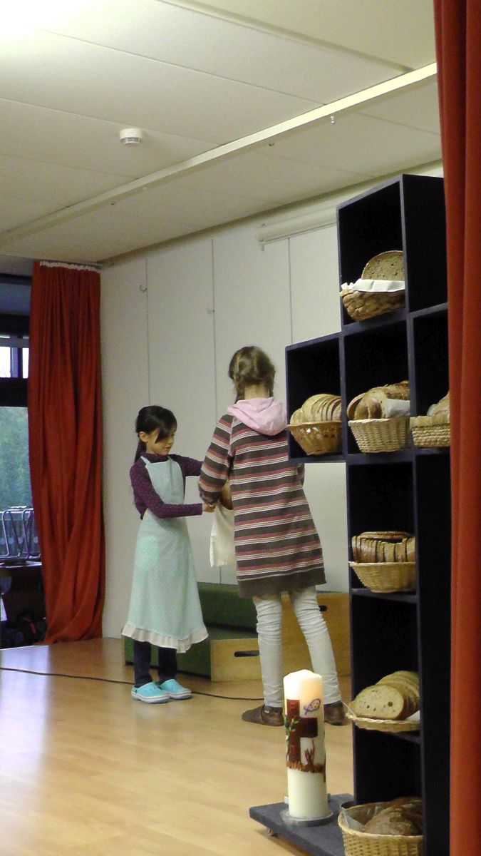 Sowieso drehte sich heute vieles um das Essen, das "täglich Brot". Manche Klassen bereiteten ein gemeinsames Frühstück vor. Es wurde auch viel gebastelt, gemalt und gespielt. Und da das Wetter mitmachte, konnten einige Klassen auch ins Freie gehen.