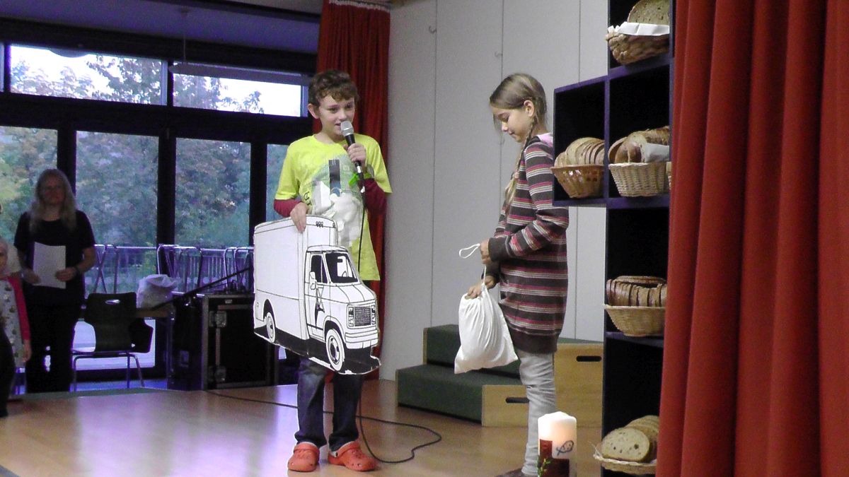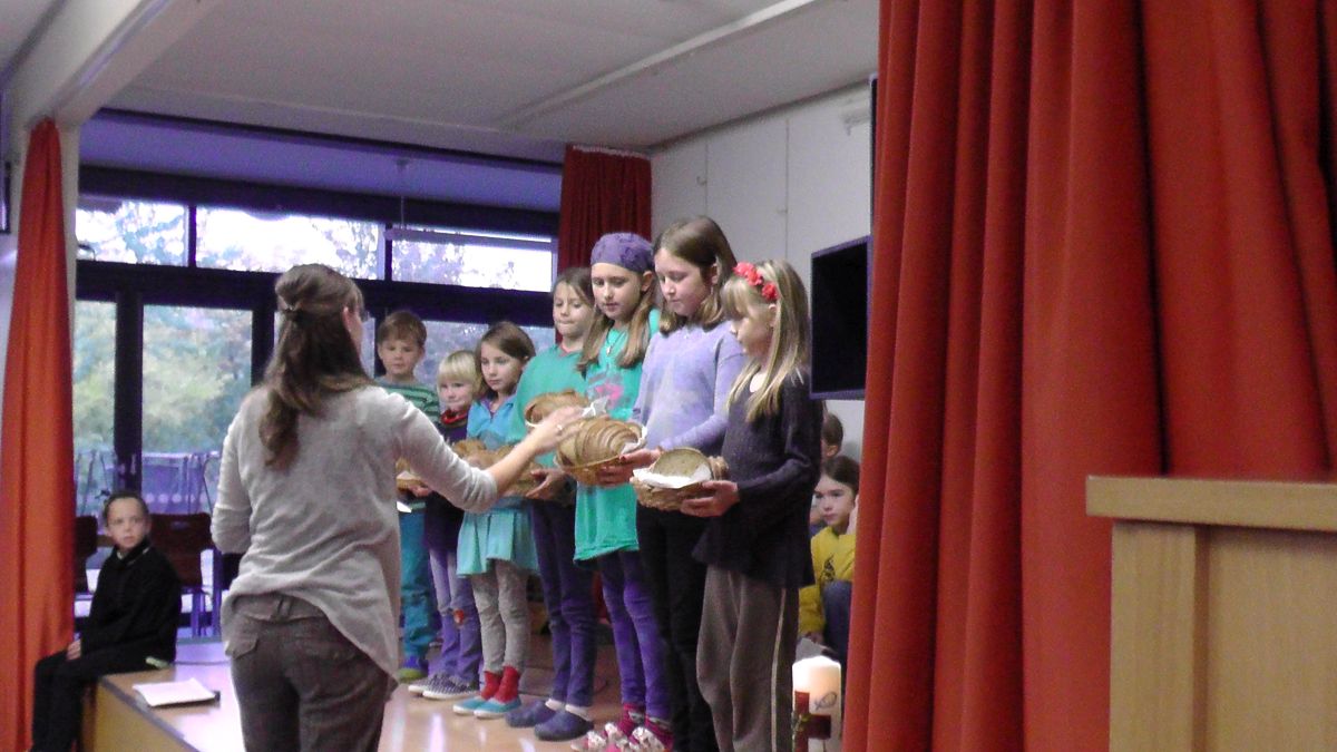 Die Klassen durften sich im Anschluss an die Andacht auch über einen Korb voll Brot freuen, den man teilen konnte.