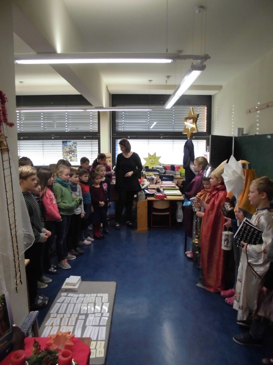 8:41 Uhr | Uiuiui, ganz schön viel Weihrauch aufgelegt, ich sehe kaum noch die Kinder, für die wir gerade singen... ...und was macht dieser rosa Elefant dort hinten in der Leseecke?? Muss ich nachher mal meine Lehrerin fragen... |