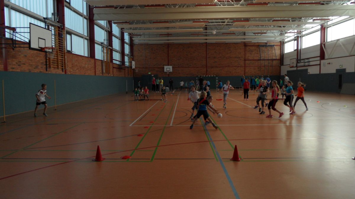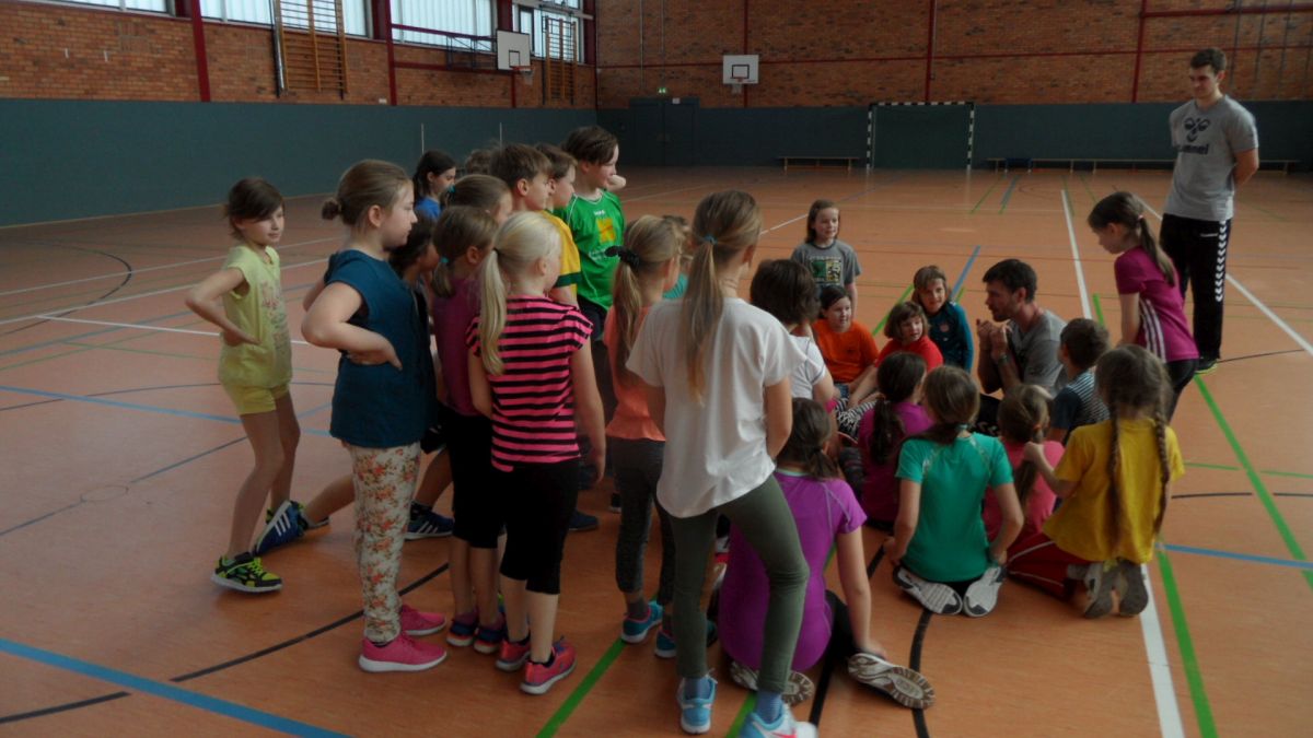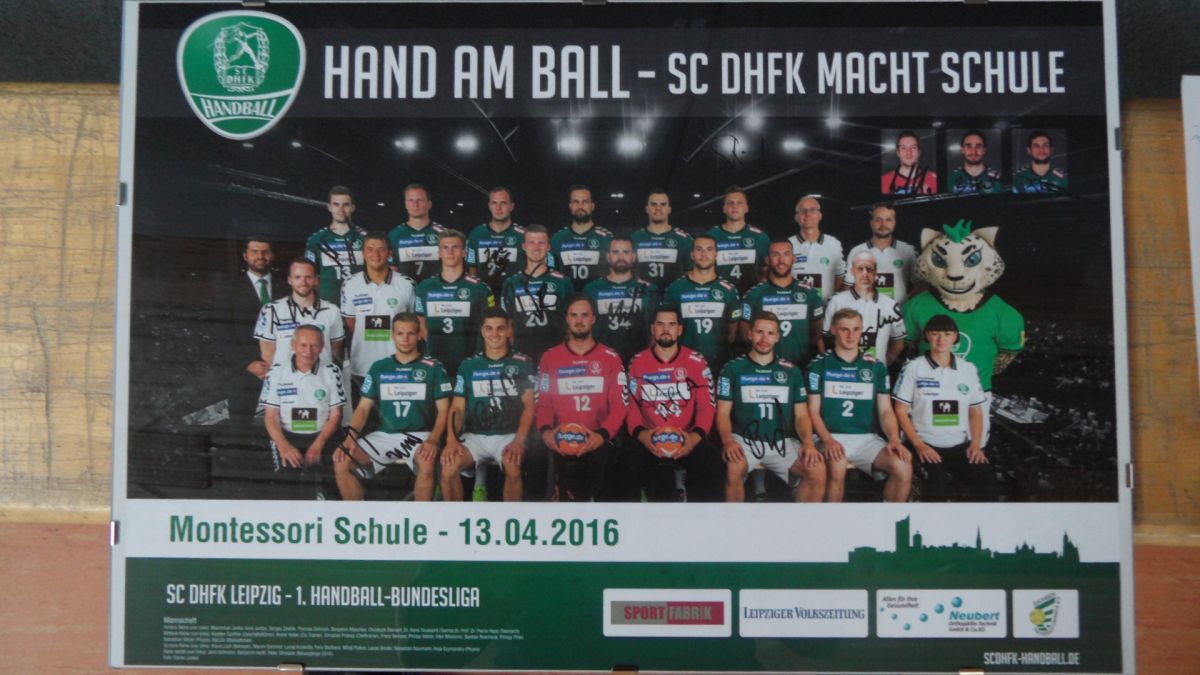 Im Rahmen des Sportunterrichts für alle Dritt- und Viertklässler gab es eine außerordentliche Trainingseinheit mit Daniel Andrä (Kindersportkoordinator beim SC DHFK Leipzig/ Abteilung Handball). Begleitet wurde er von Maximilian Janke (Spieler beim SC DHFK Leipzig/ 1. Bundesliga) und einer Praktikantin aus Mexico. In jeweils 90 Minuten wurde mit viel Spaß geprellt, geworfen und gespielt. Am Ende gab es sogar ein Teambild und Autogramme vom Profi. An diesen besonderen Sport-Mittwoch werden sich alle sicher lange und gern erinnern...
