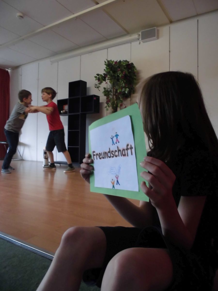 - drei Kinder, die es in der Schule schwer haben, gelangen nicht durch Gewalt und Einschüchterung ans Ziel, sondern erkennen durch mutiges Einschreiten eines anderen Kindes, was die bessere Lösung wäre