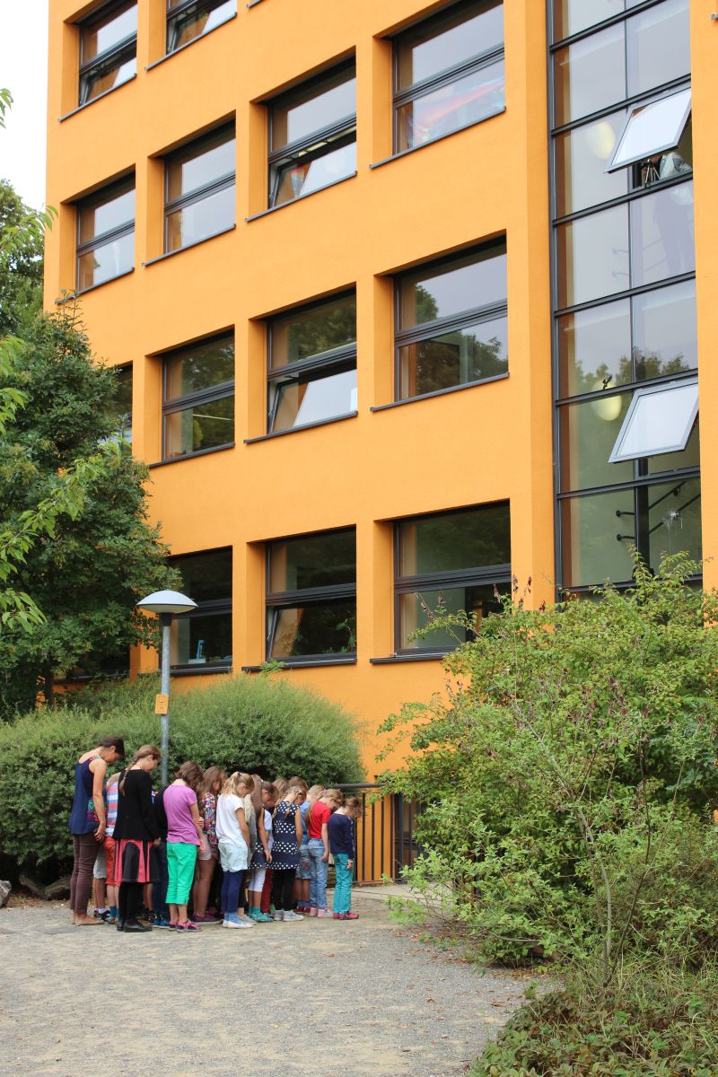 Heute kam Herr Gabriel von der Firma Minnemedia zu Besuch, um Bilder der Klassen für die Festschrift zum 20-jährigen Jubiläum zu schießen.