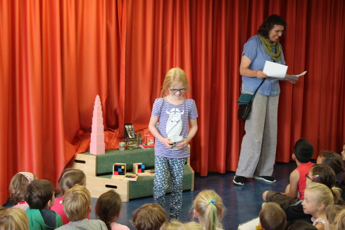 Während der Festwoche gab es in der Hortzeit ein Montessori-Quiz, das Friederike Kinder und Erwachsene ausfüllen ließ. Die Auswertung davon sowie die Sieger im Schulzentrums-Suchspiel wurden heute im Morgenkreis bekannt gegeben.
