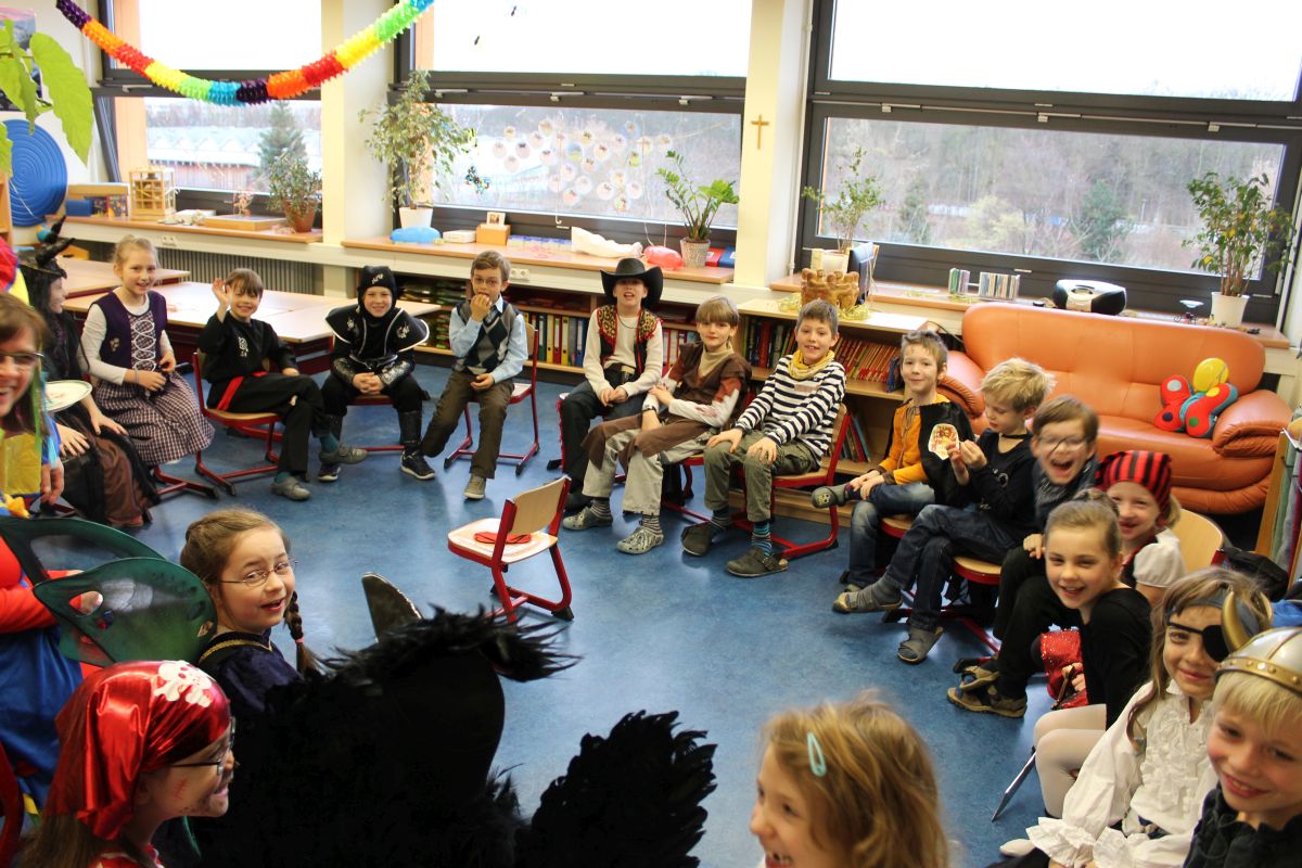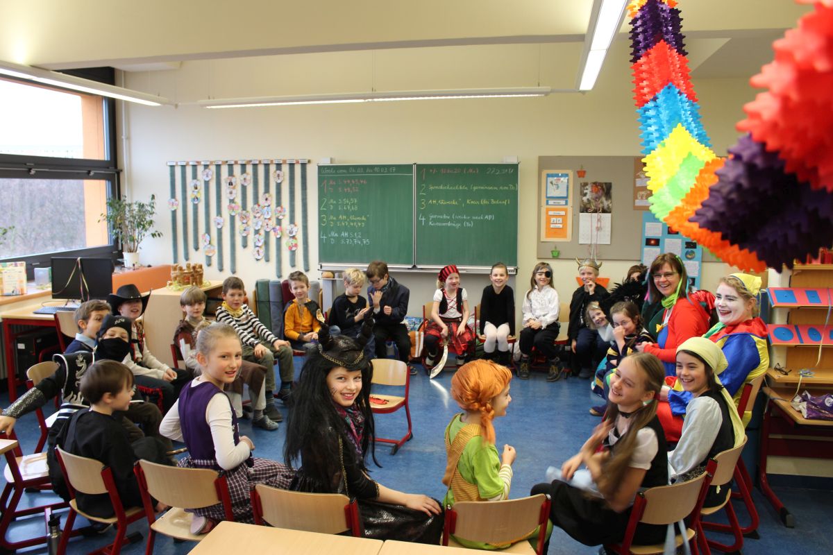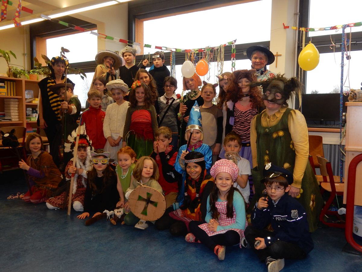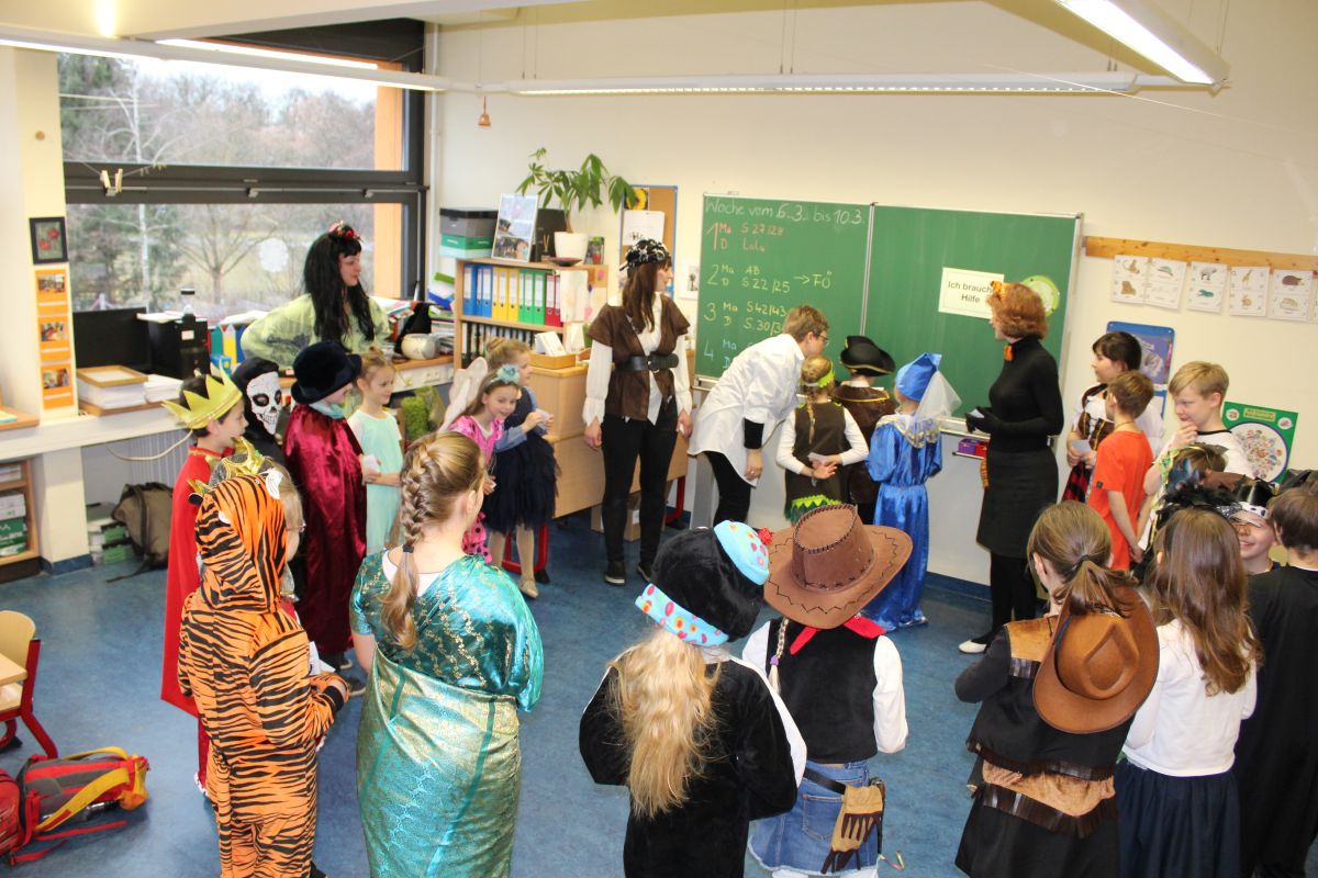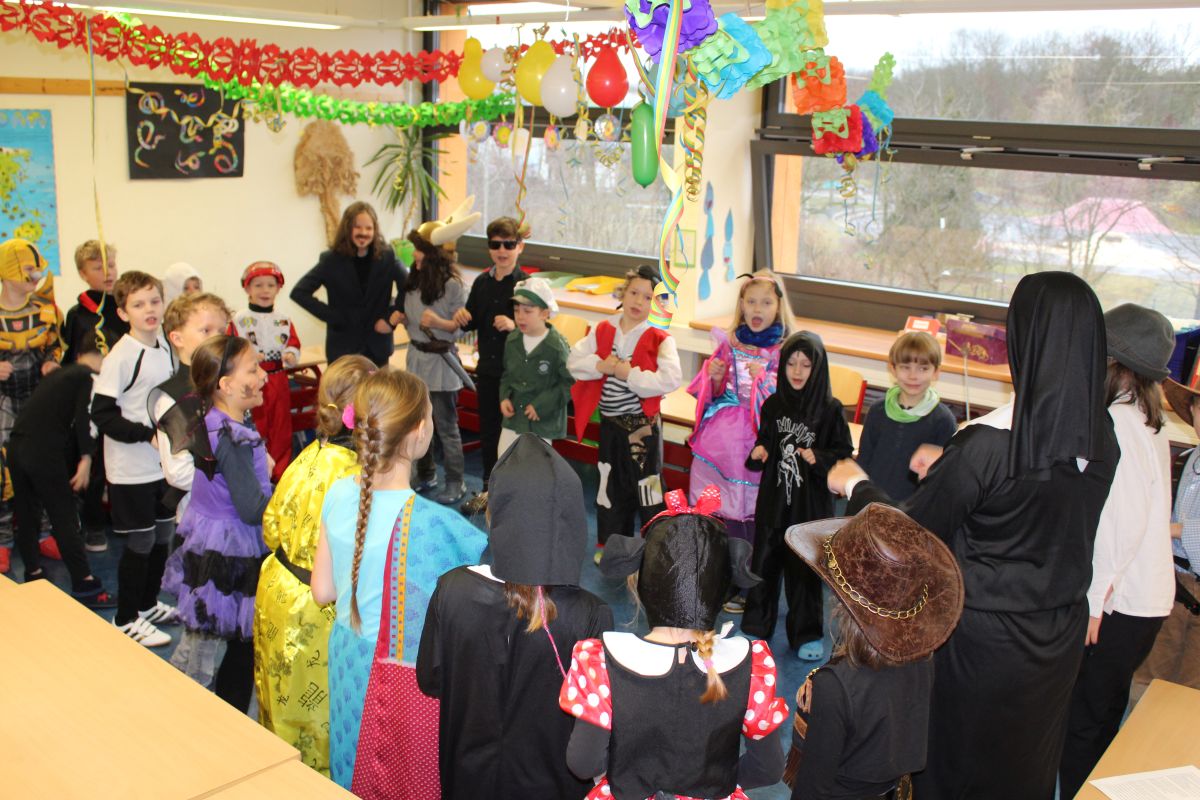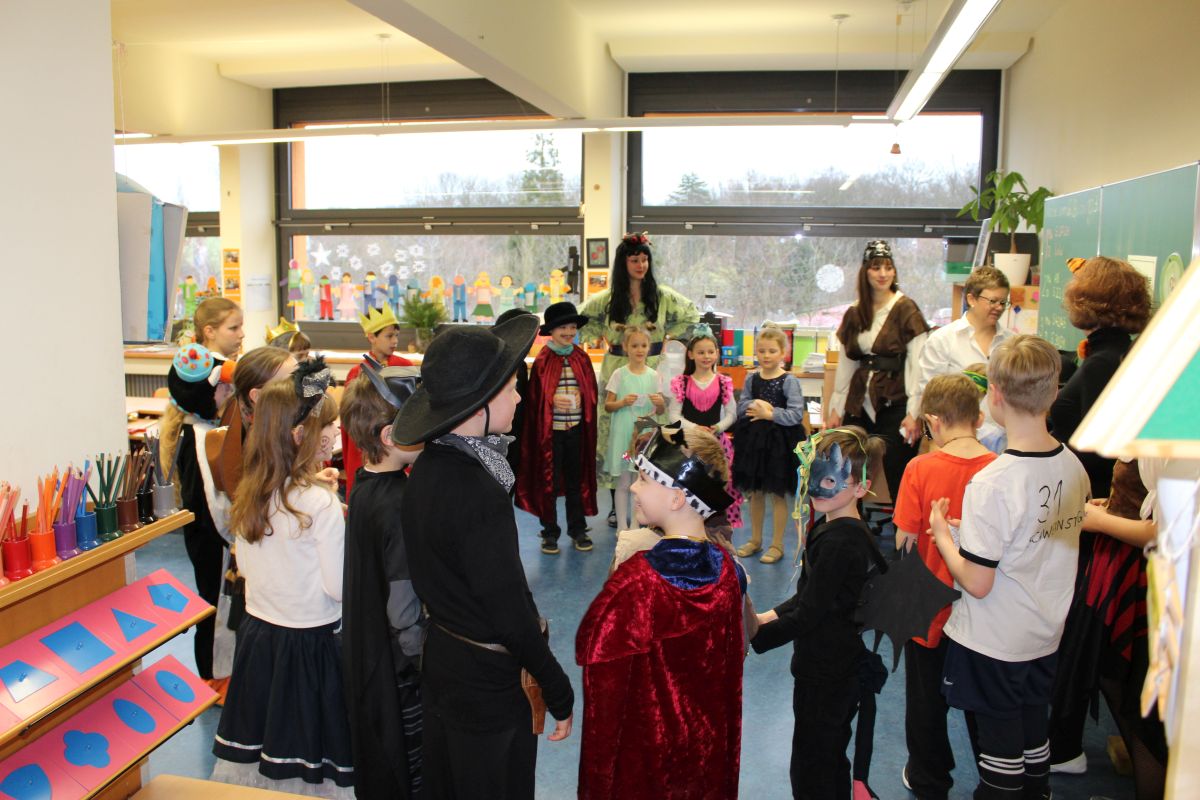 Immer wenn die Faschingstage in die Schulzeit fallen, fällt die Freiarbeit um und das närrische Treiben ersteht. Viele verschiedene Gestalten aus allen Epochen, Welten und Geschichten versammelten sich deswegen zur großen Party!