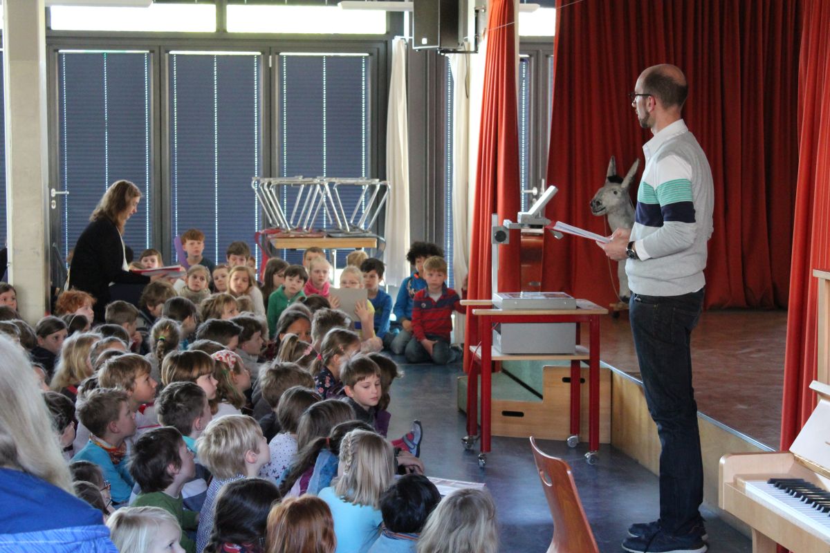 Zum Start gab es am Montag eine von der Kätzchenklasse und Pfarrer Jäger vorbereitete Andacht. Dann ging es in den Klassen weiter mit einer Geschichte der Menschen aus dem Land Malon, wo stete Dunkelheit herrscht.