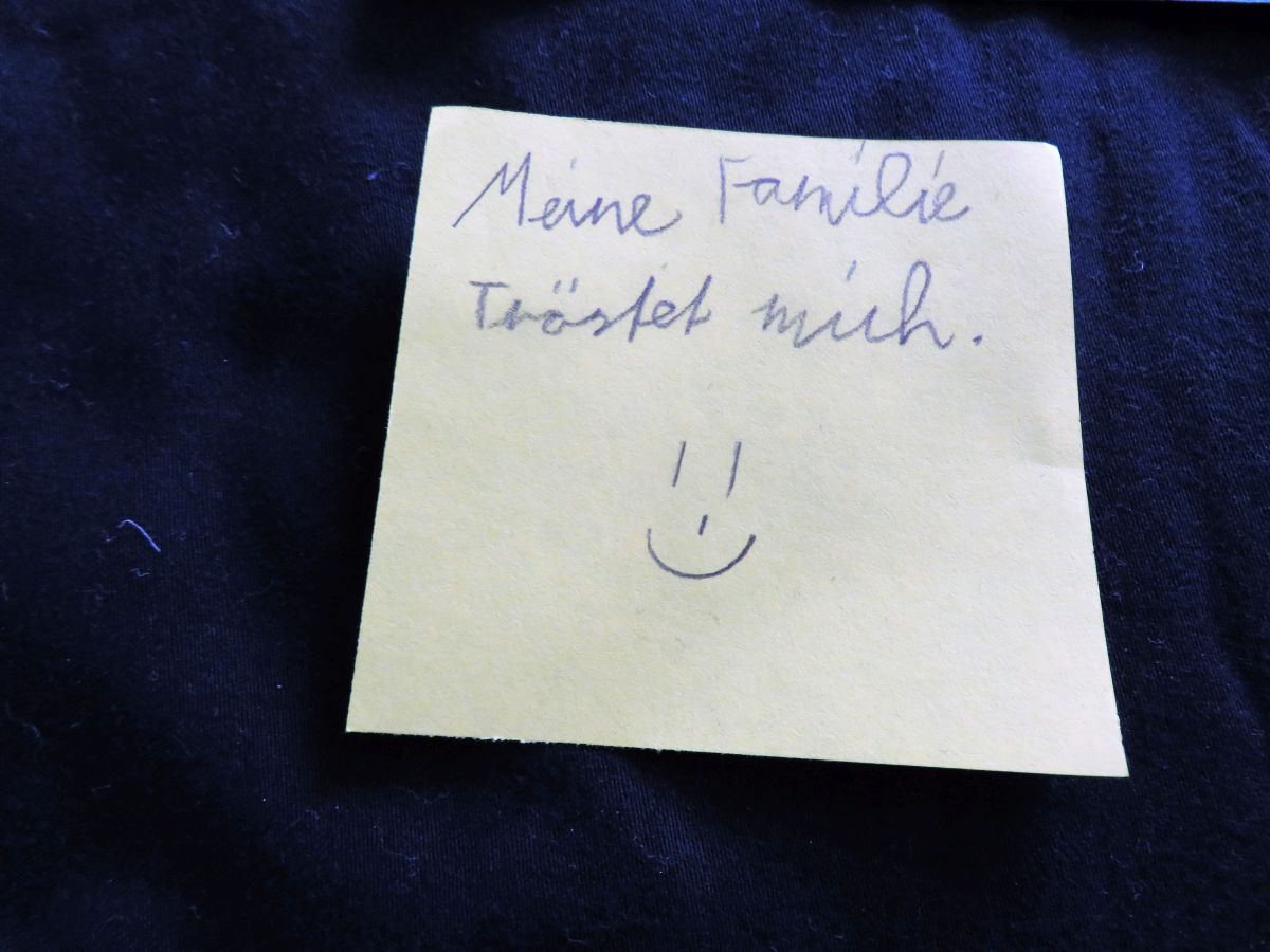 Nach der Karandacht am Montag begann ein reger Austausch im Regenbogenzimmer. Was macht mich traurig und was hilft mir dabei, dass die Sonne wieder für mich scheinen kann.