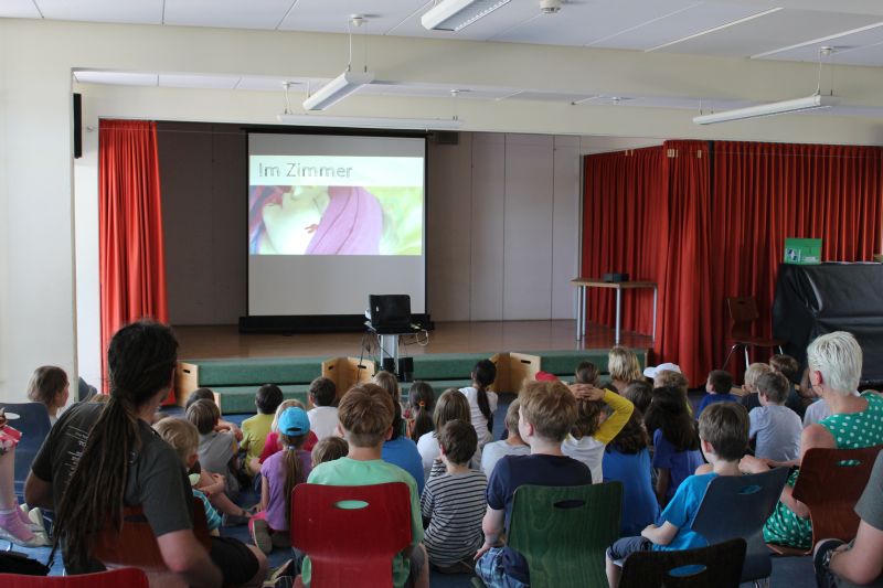 Heute nachmittag, Punkt 15 Uhr, kamen viele Kinder und Eltern in die Aula, um beim 5. Rafin-Kurzfilmfestival dabei zu sein. Sechs Filme wurden gezeigt und ein Gewinner gewählt!