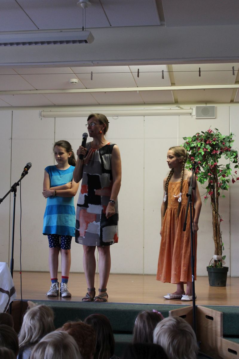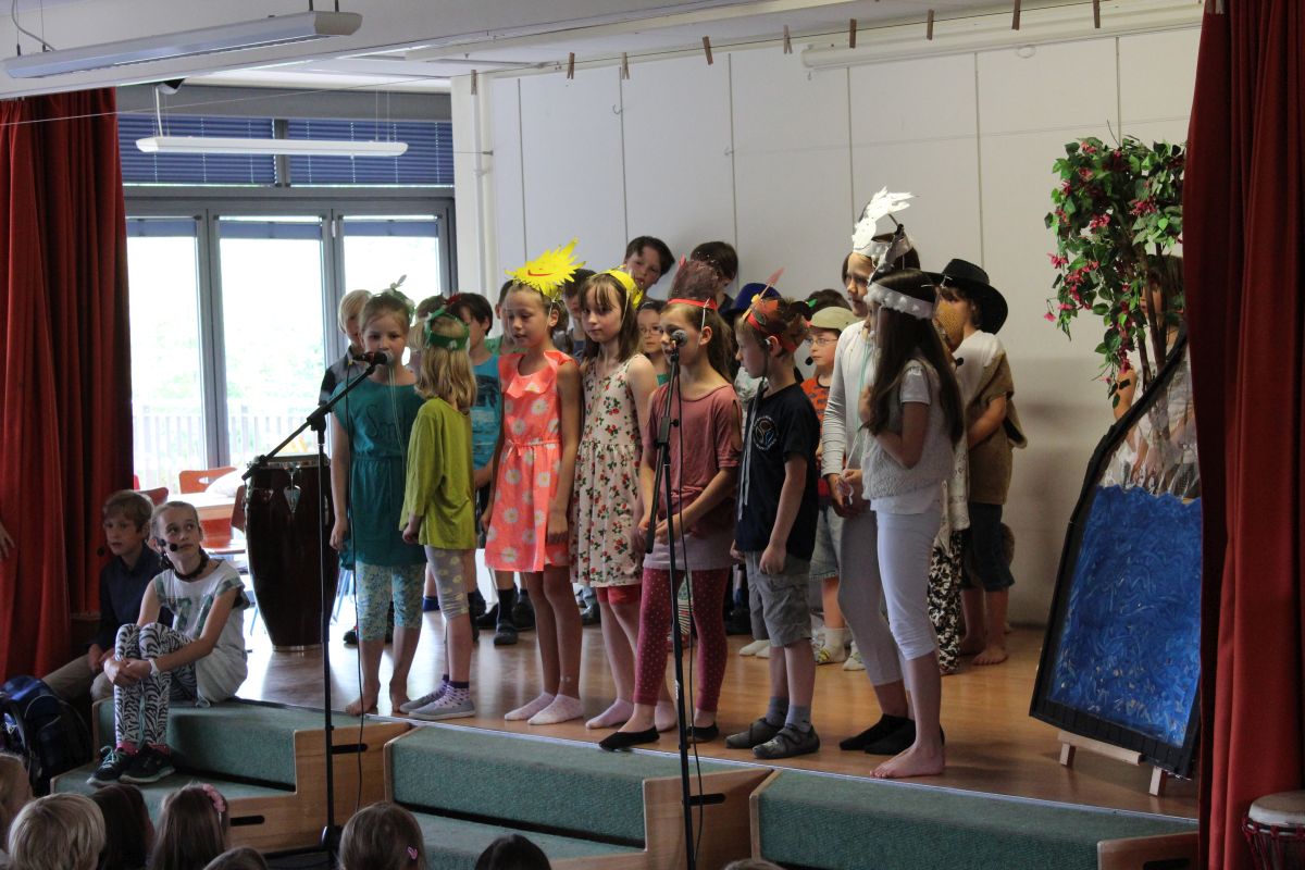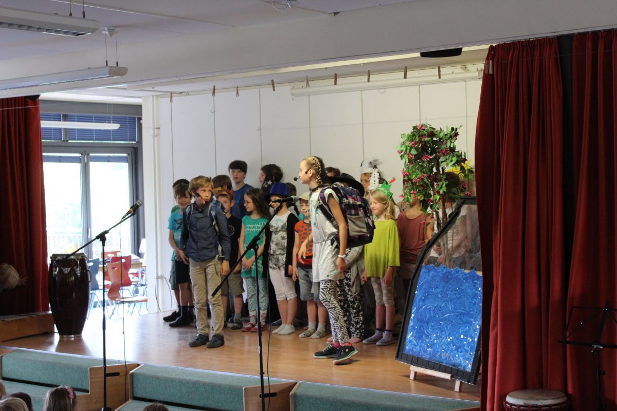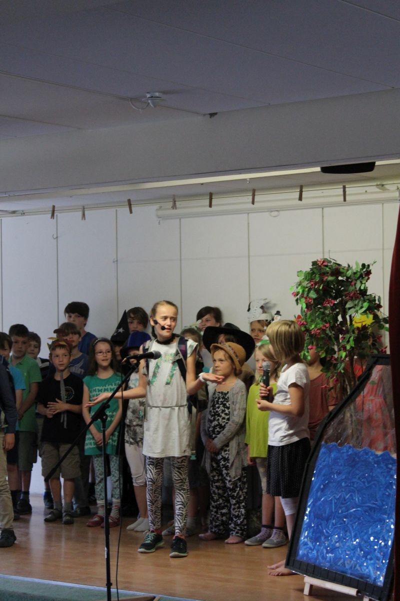 Dank gebührt auch den Kindern der Delfin- und Schmetterlingsklassen, denn sie haben in den letzten Schulwochen unter erschwerten Bedingungen das neue Schulanfangsprogramm "Der Zauberer Korinthe" einstudiert und heute für alle Kinder aufgeführt.