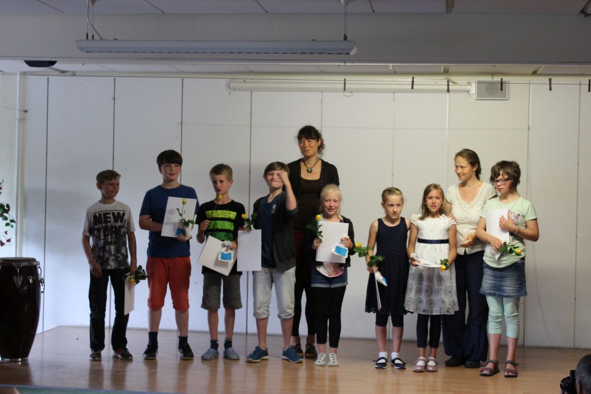 Nach einer Ansprache von Frau Schkölziger gab es dann die Abschlusszeugnisse, ein paar Tränchen und eine Muschel mit Perle als Abschiedsgeschenk. Damit die baldigen Fünftklässler auch in Zukunft Perlentaucher des Wissens sein können.