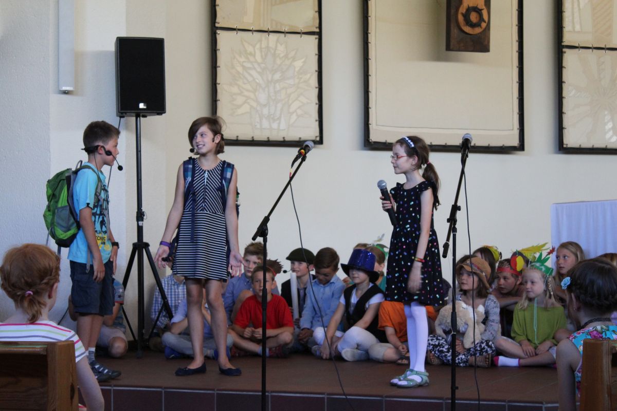 Das dachten sich auch die beiden Freunde Jannes und Lara, die Hauptpersonen des Stücks, das die Schmetterling-und Delfinklasse für die neuen Schulanfänger aufführten. Es wurde also gereimt, gespielt, gesungen und gedichtet. Und schließlich schafften es die beiden zum Zauberer Korinthe.