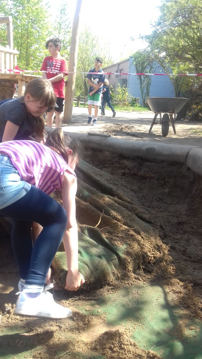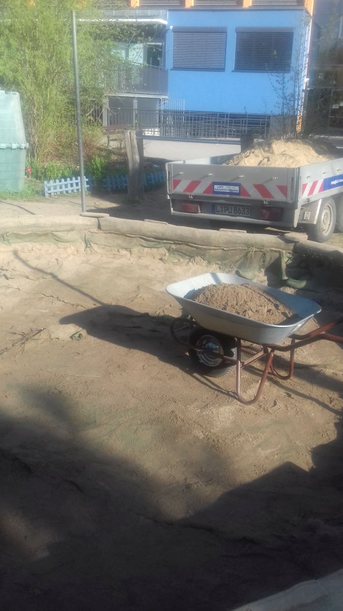 * und nun gibt es auch wieder mehr/genug/neuen Sand im erneurten Sandkasten vor dem Hort