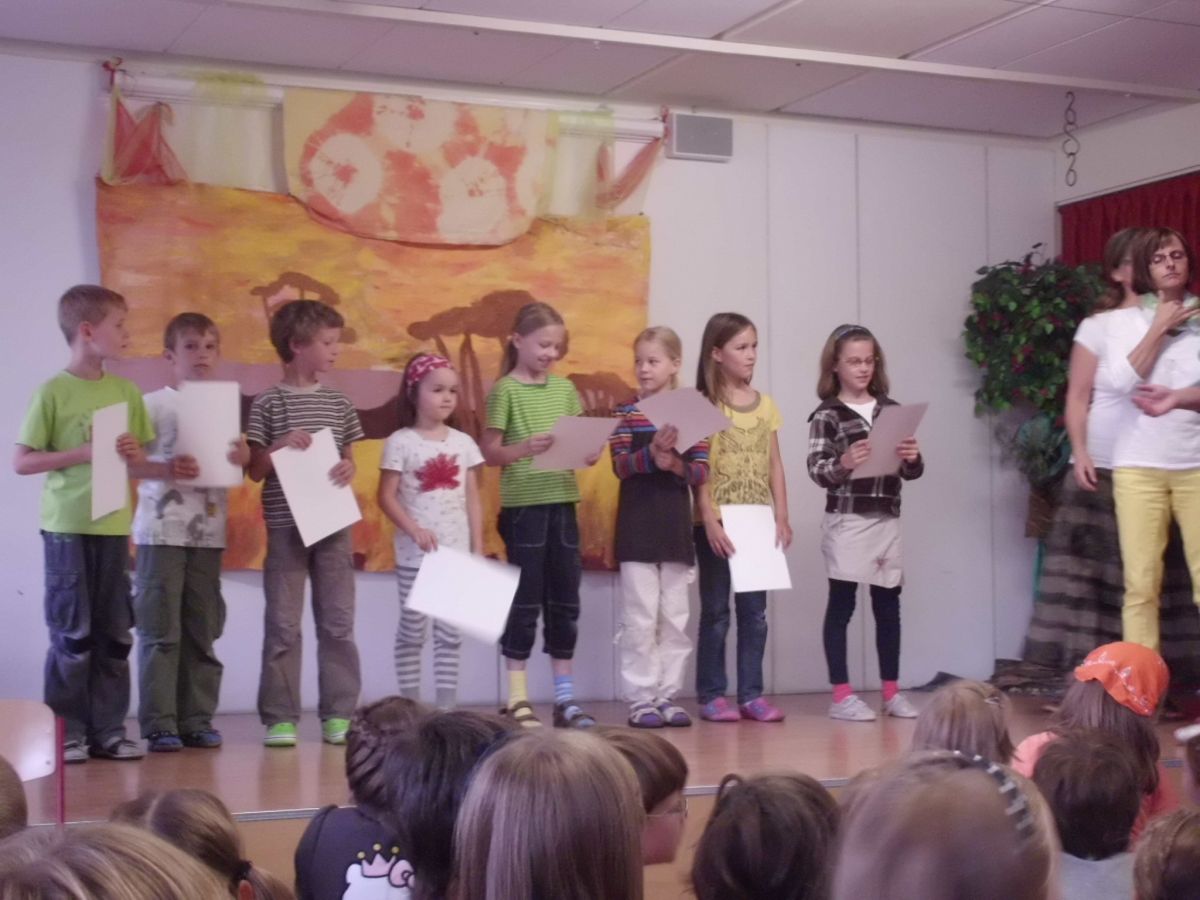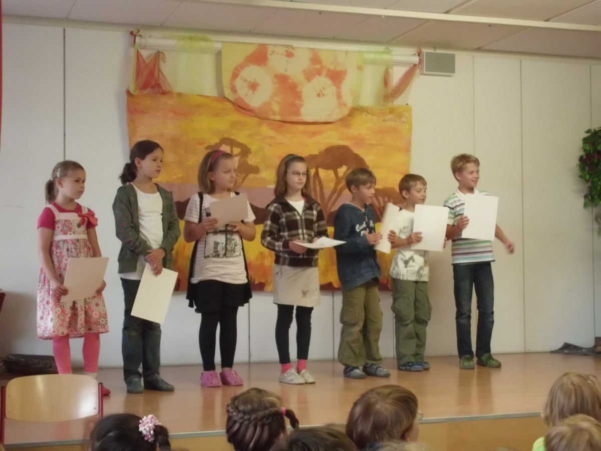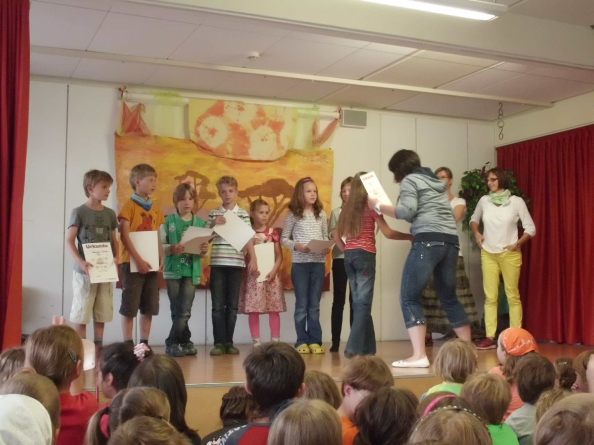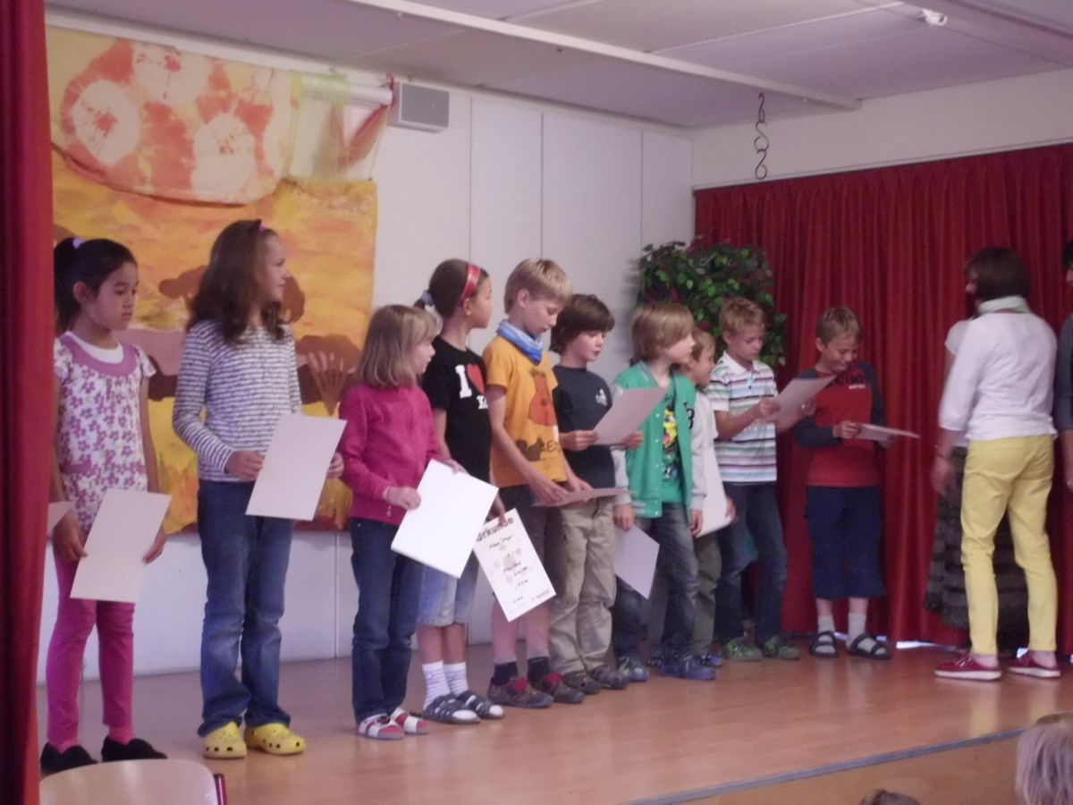 Stolze Kinder sah man auf die Bühne kommen und die Urkunde in Empfang nehmen, der Applaus und die Anerkennung der anderen Kinder war ihnen gewiss.