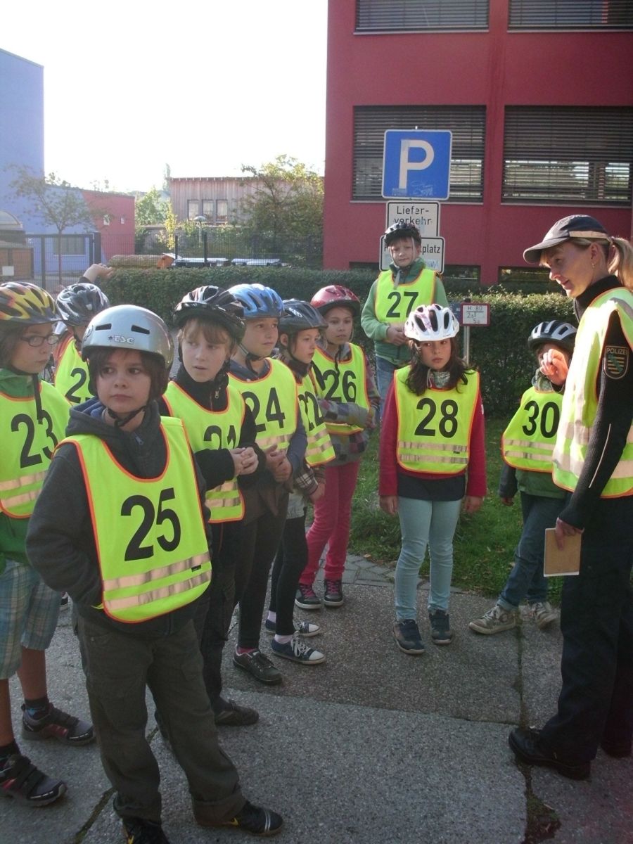 Doch zuerst stand eine kleine Einführung in Form eines Gesprächs mit den netten Polizisten an: was braucht ein verkehrssicheres Fahrrad, wie verhalte ich mich richtig im Straßenverkehr usw.
