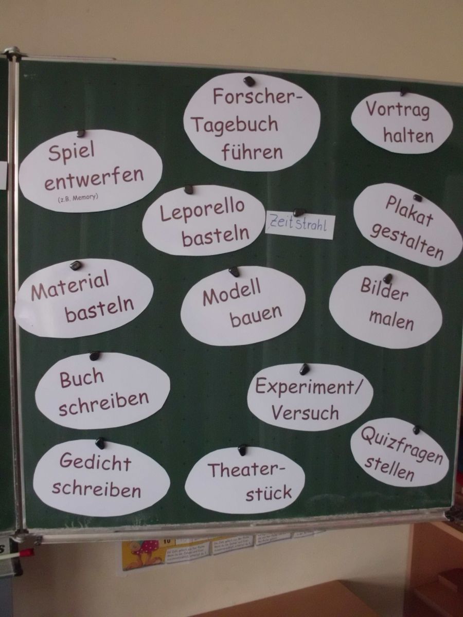 Am Ende der Projektwochen findet dann gewöhnlich die Präsentation der Ergebnisse statt, die größeren Kinder halten Vorträge, und alle Kinder (und oft auch eingeladene Eltern) staunen: über so viel Forschergeist, über so viel Herausgefundenes, Geschriebenes, Gemaltes.