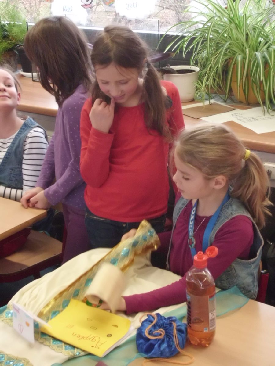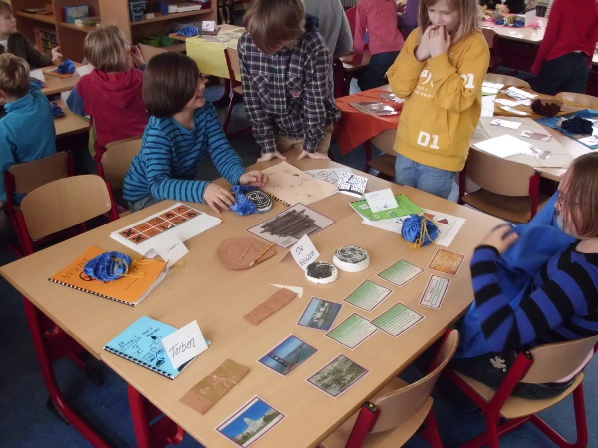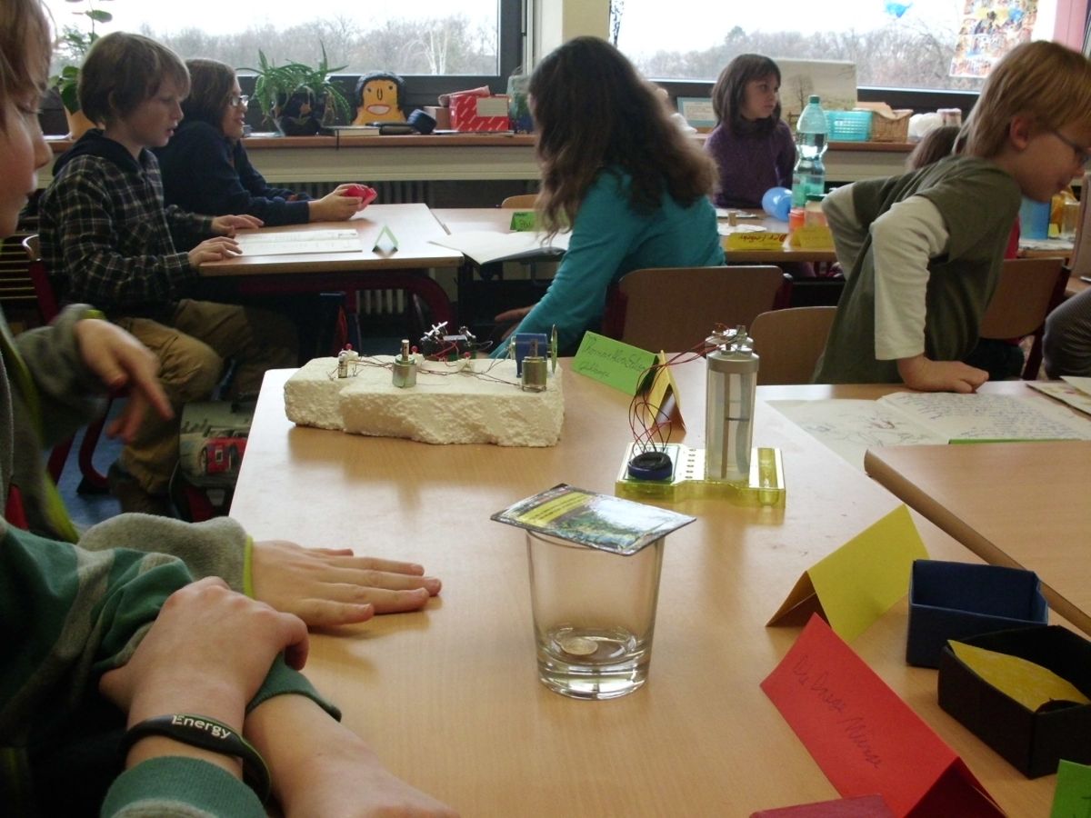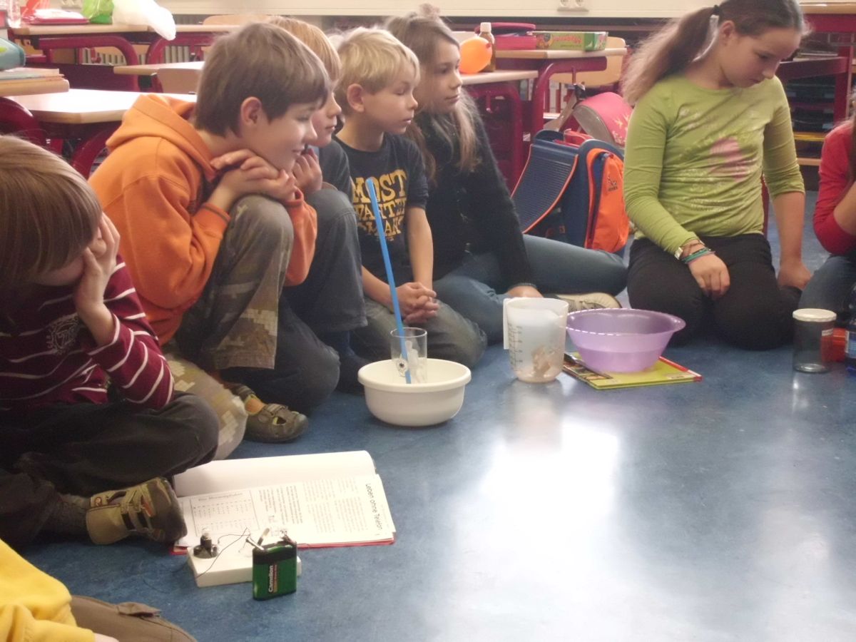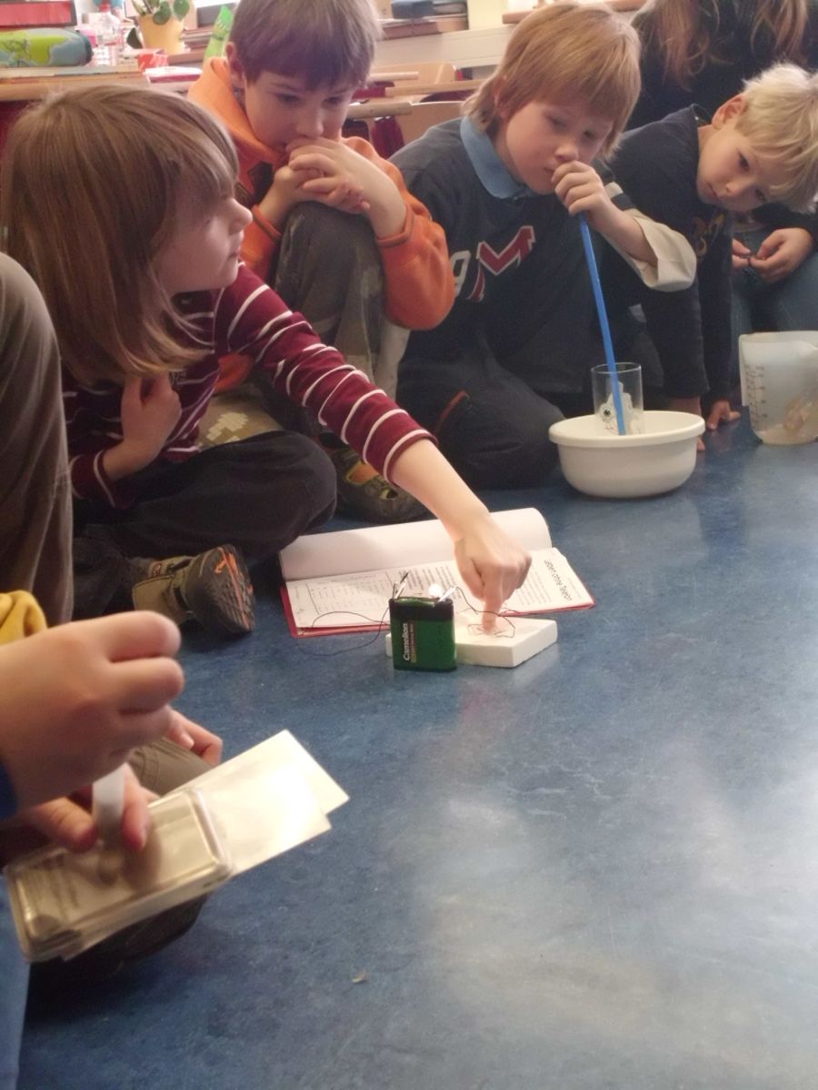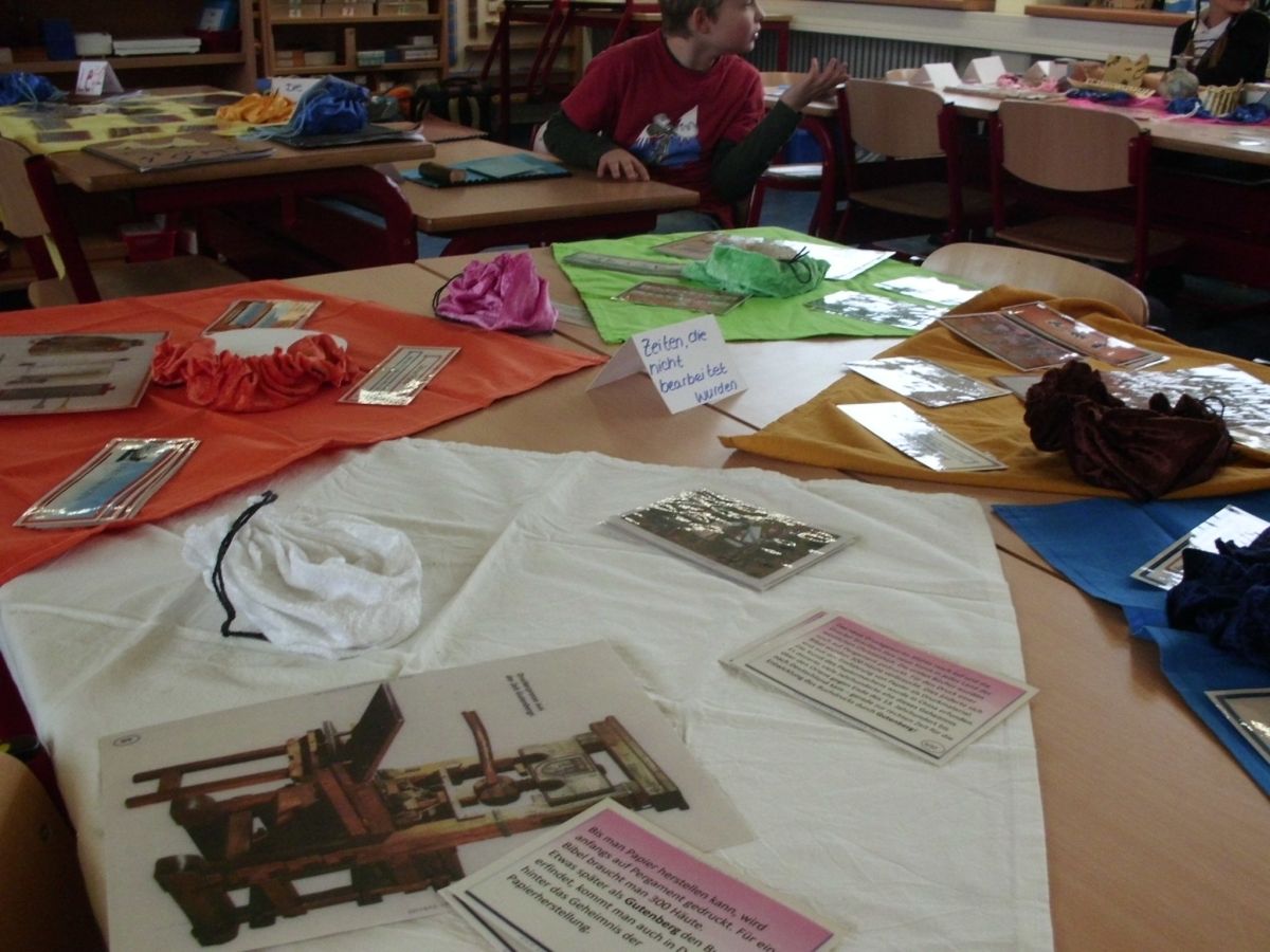 In den einzelnen Klassen finden die unterschiedlichsten Projekte statt. Allen gemeinsam ist, dass die Kinder sich wie selbstverständlich mit Material beschäftigen, Nachforschungen anstellen, Hypothesen aufstellen, Experimente anstellen und Plakate herstellen.
