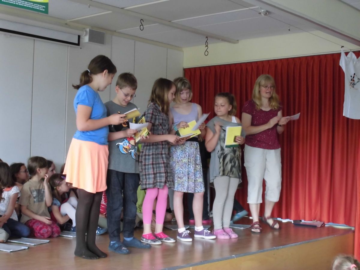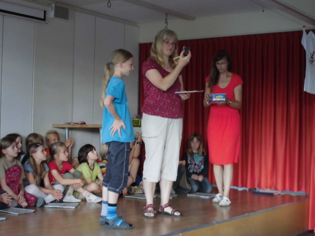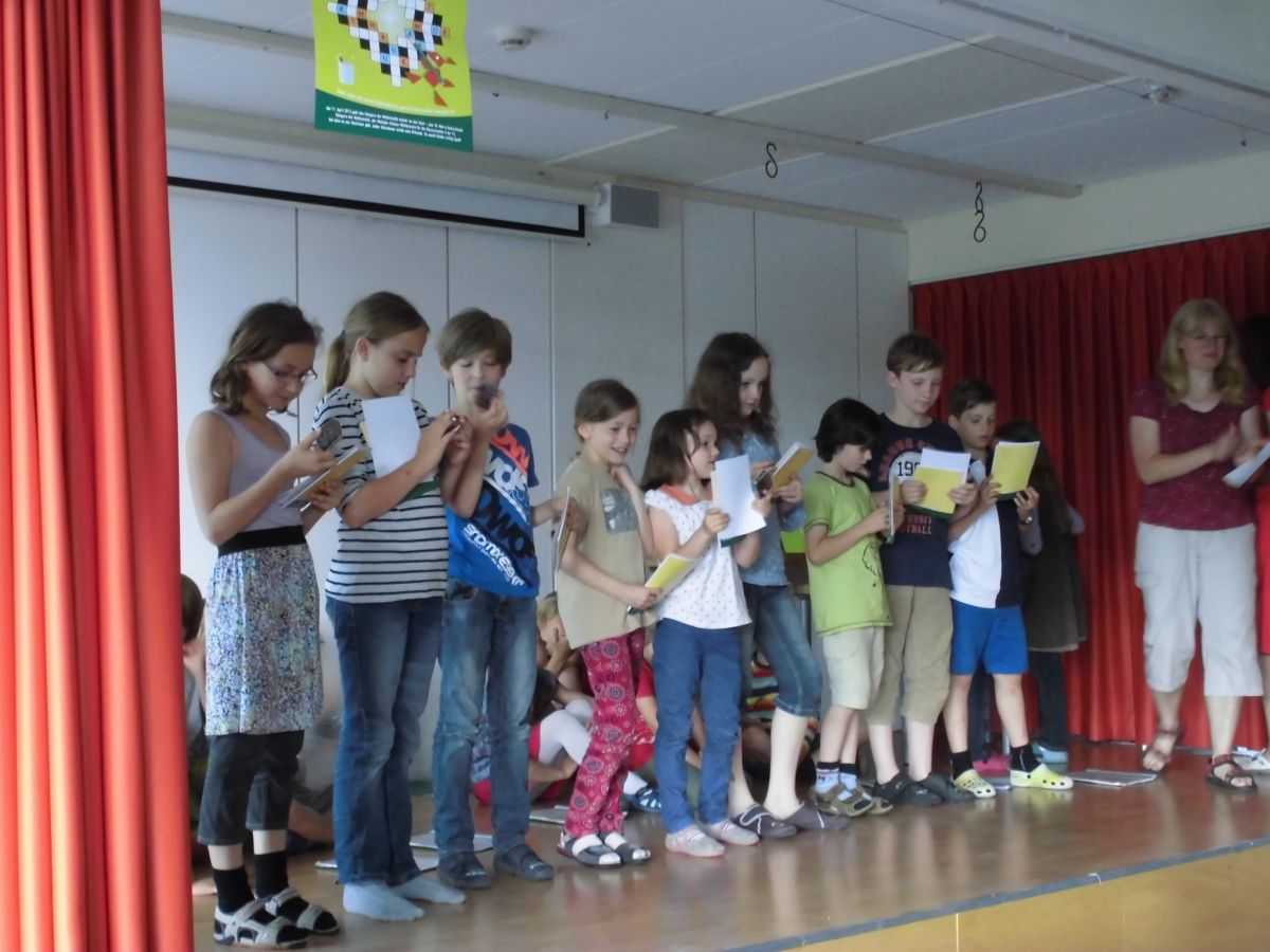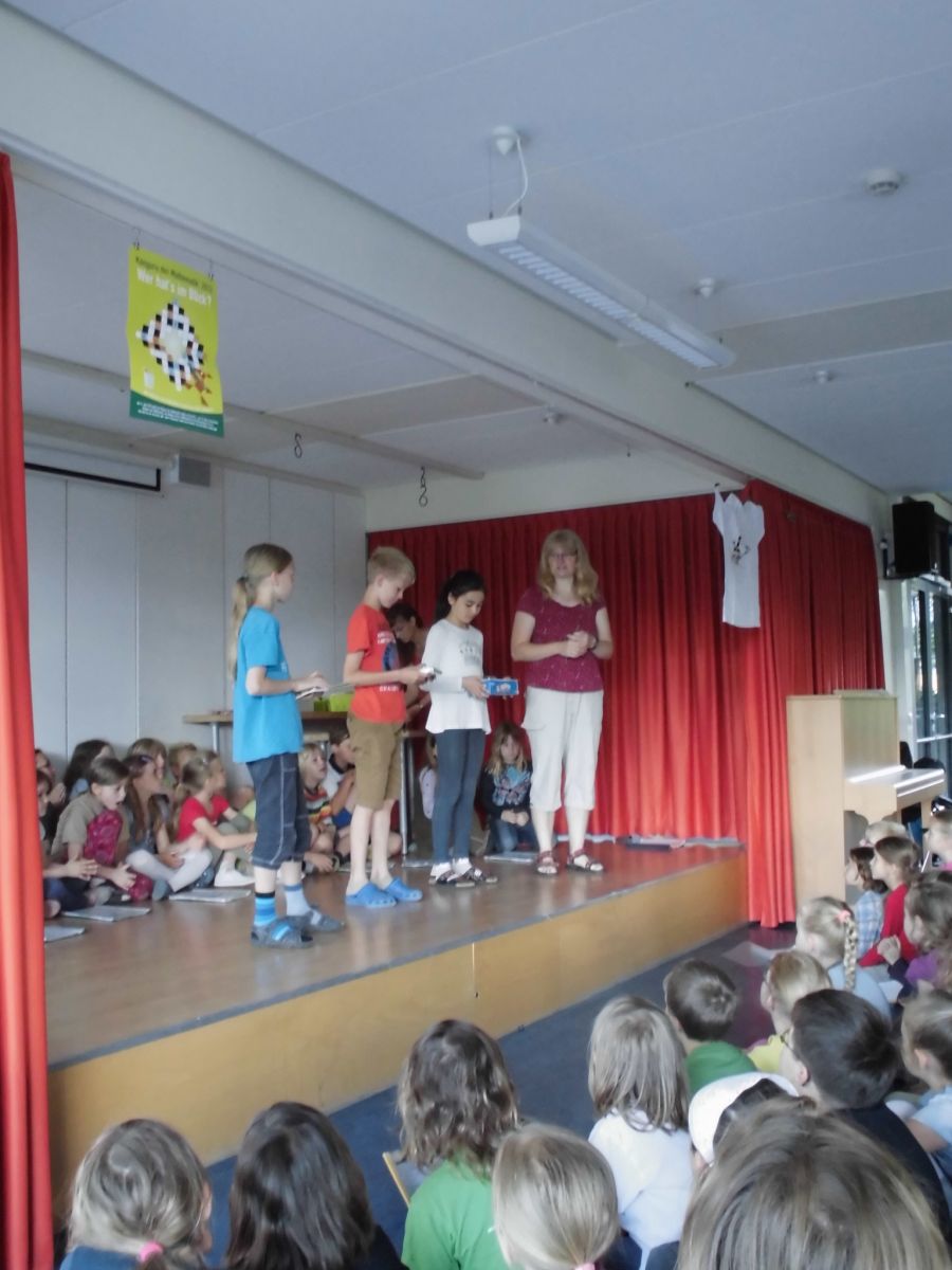 Viel Applaus für die Kinder aus allen Klassen und danach knackerte es in der Freiarbeit unaufhörlich (Knobelspiel) und wisperte es unaufhörlich ("Wieviel Punkte hast du denn gekriegt?").