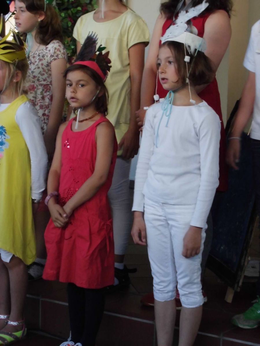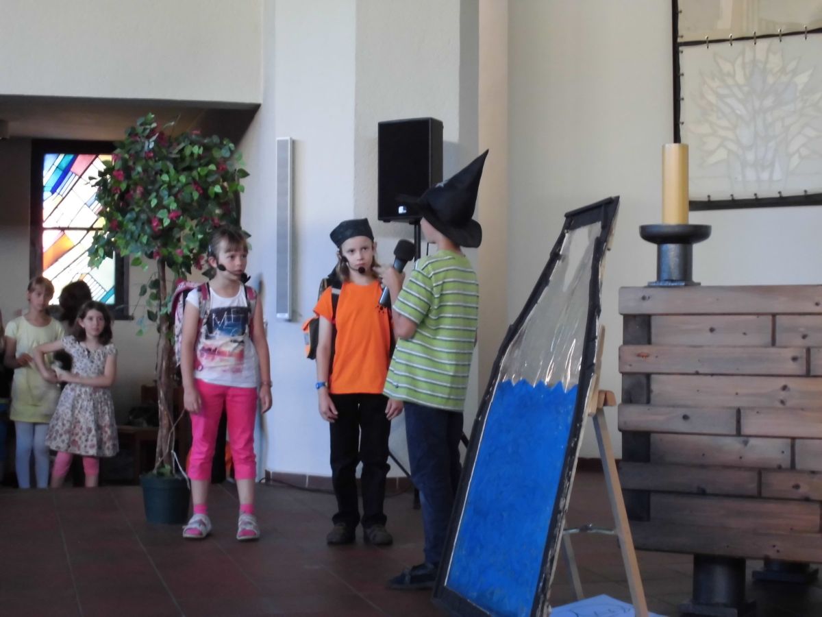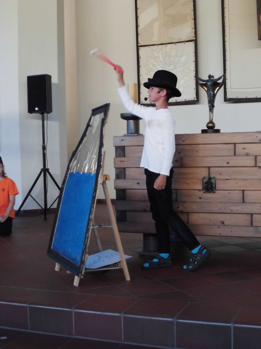 Viel besser konnte das dann der Zauberer Korinthe, der in dem Schulanfangsprogramm der Regenbogen- und Schmetterlingsklassen auftrat. Zusammen mit zwei Schulkindern und vielen anderen Akteuren zeigten sie die Geschichte vom wundersamen Zauberer, der Briefe heimlich verändert und so den Kindern helfen kann. Mit farbenfrohen Kostümen und abwechslungsreichen Liedern verging das Programm im Nu und schon kam der große Augenblick: die Einschulung.