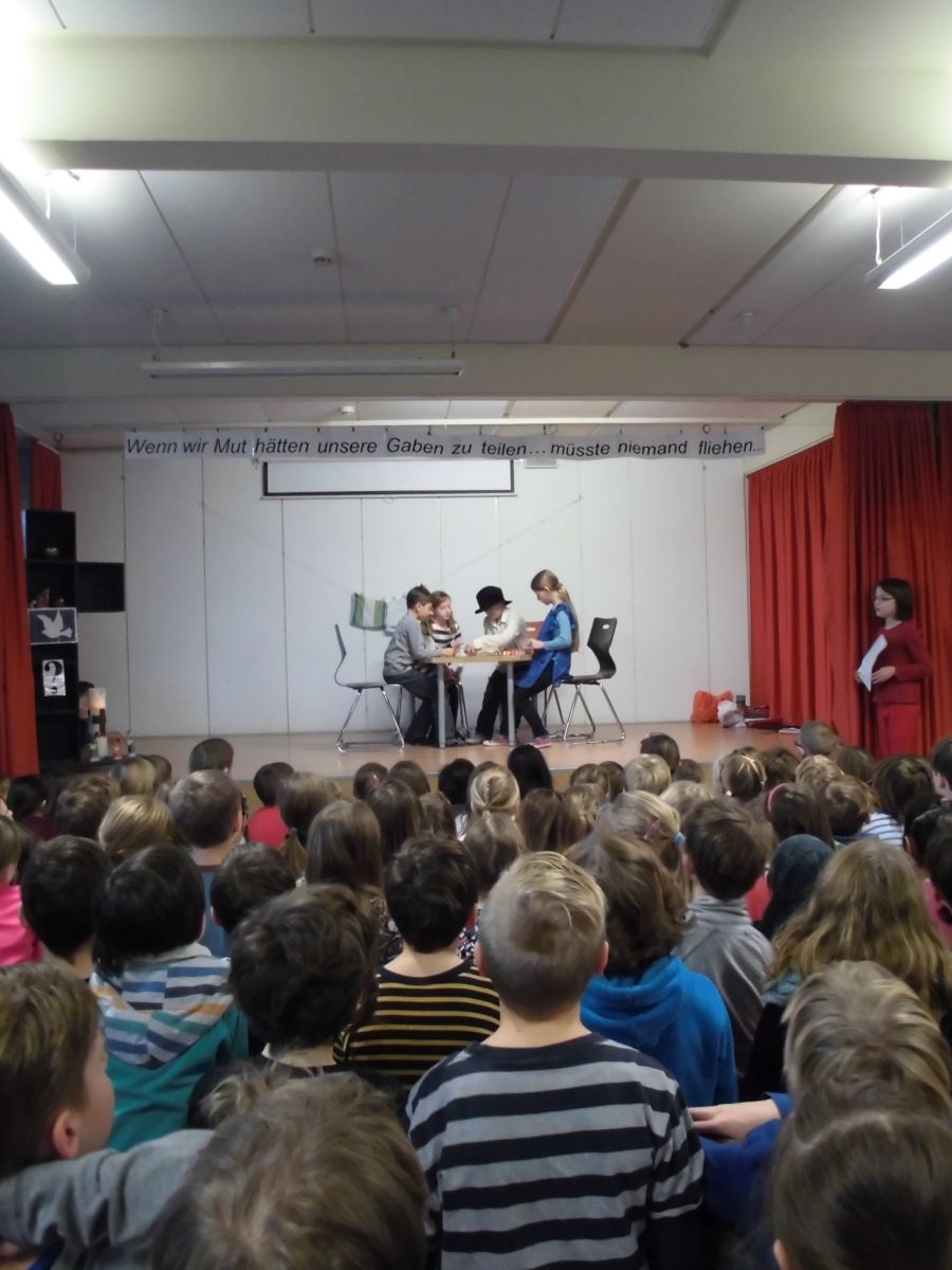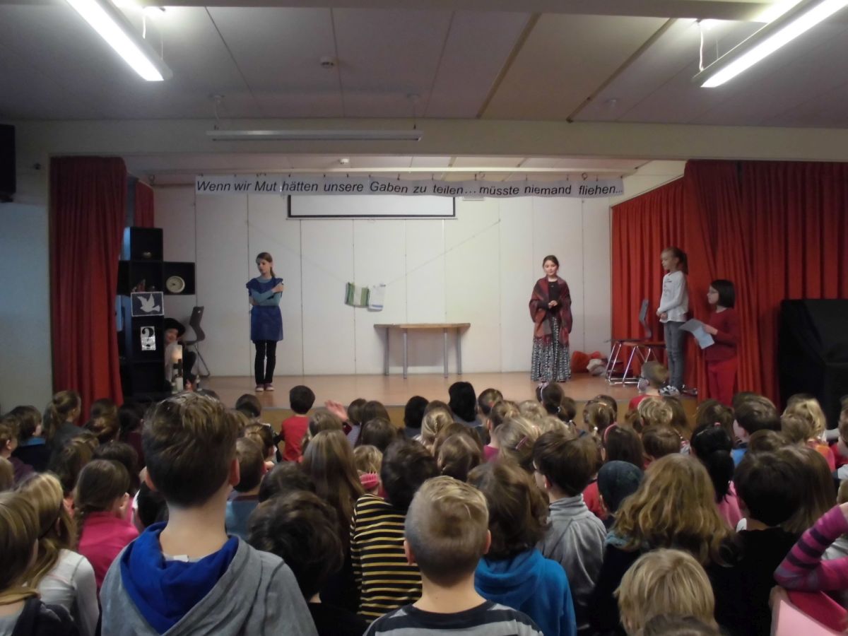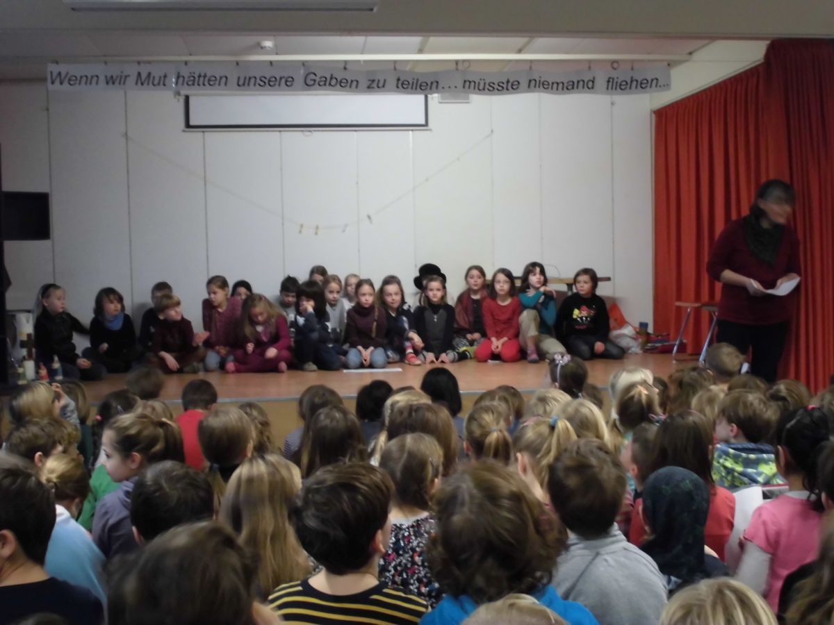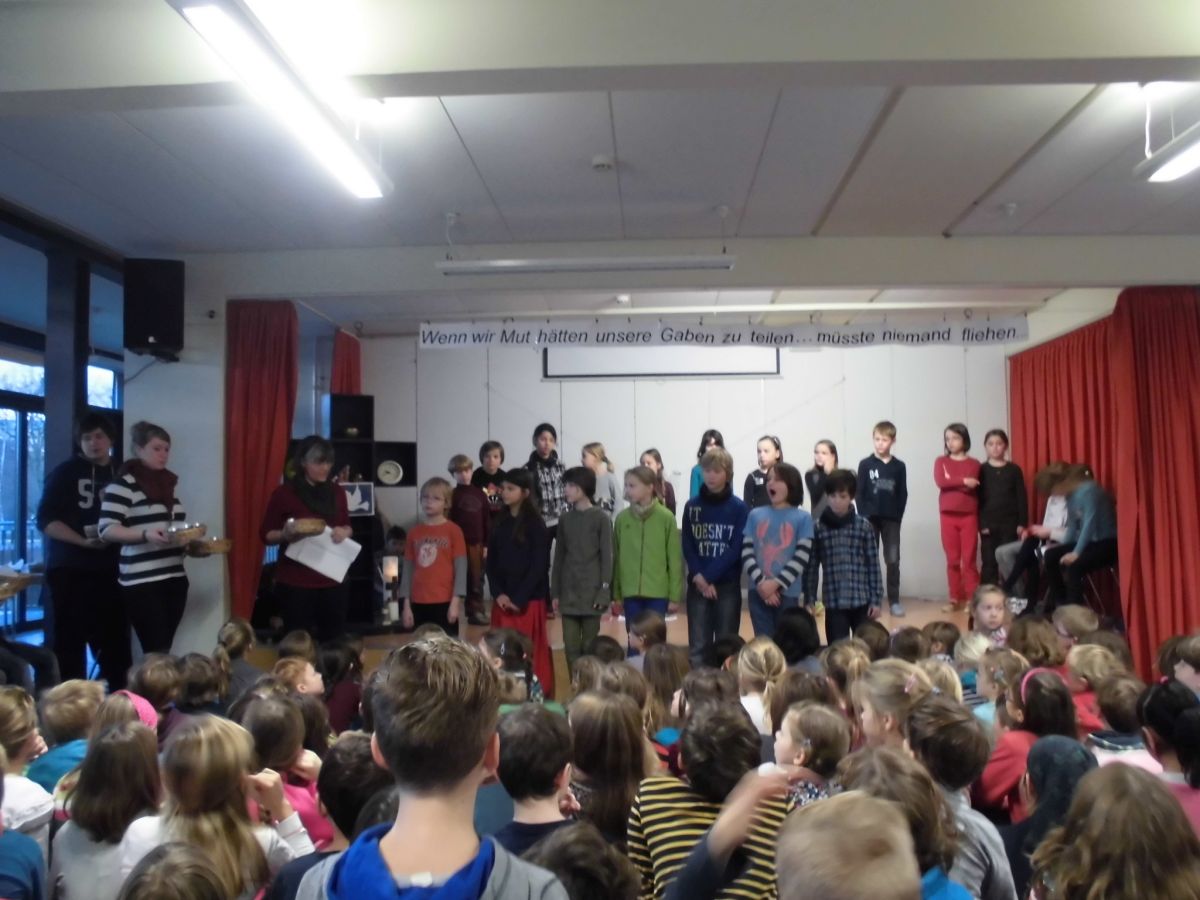 Heute war (wie jedes Jahr) die Dreikönigsandacht in der Grundschule. Die Mäuschen-Klasse hatte dazu gemeinsam mit Schwester Magdalena ein Anspiel vorbereitet.