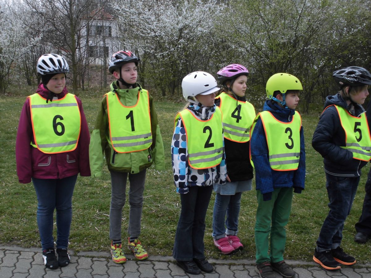 Der Frühling schaut schon kräftig heraus, doch heute früh war es erst einmal tüchtig kalt, als die ersten 6 Viertklässler gemeinsam mit zwei Verkehrspolizisten und auf dem Fahrrad die praktische Ausbildung begannen.