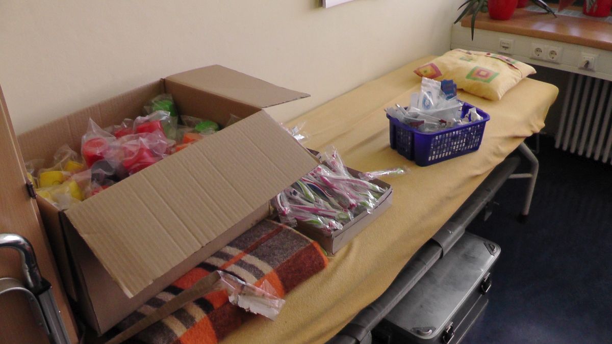 Natürlich mit der geschenkten, neuen Zahnbürste. Als Erinnerung können sich die Kinder ein kleines Geschenk auswählen und die nächsten Kinder werden zur Zahnschwester eingeflogen.