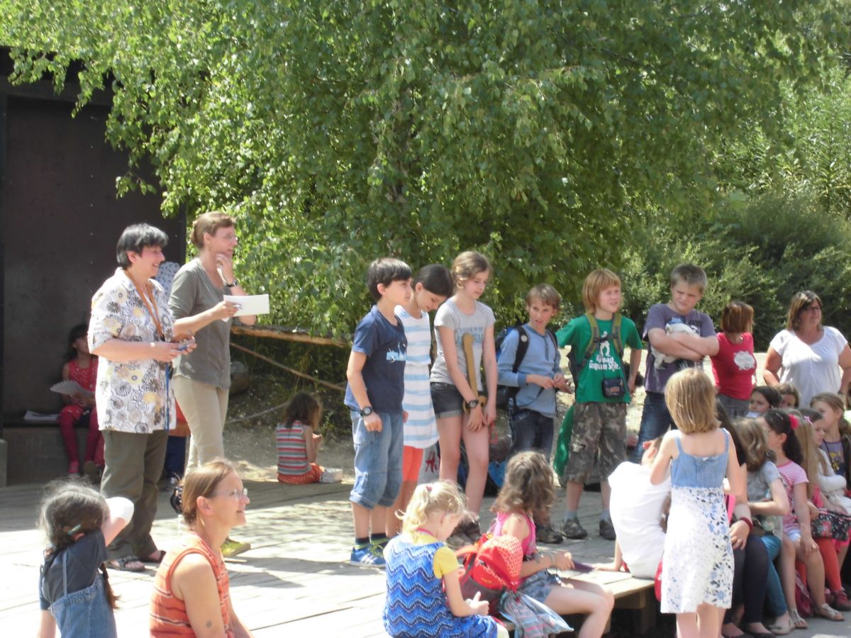 Den Abschluss erlebten alle gemeinsam in der knalligen Juli-Hitze auf dem Schulhof. Feierlich wurde der Stadtschlüssel von der Bürgermeisterin Nikola zurück an Frau Schüürmann vom Kinderzeit-Verein übergeben.